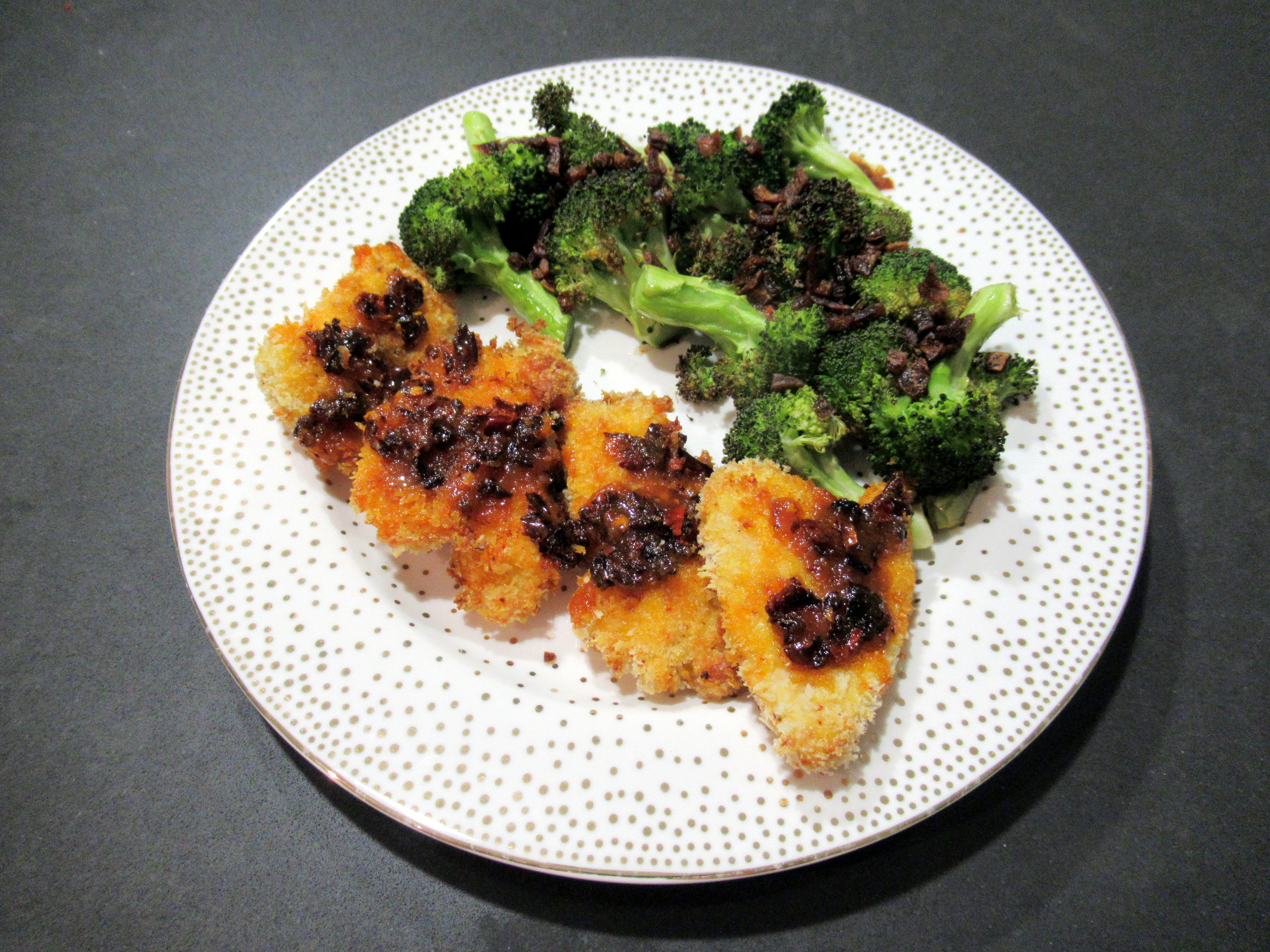Oven-baked crispy chicken tenders (loosely inspired by this recipe) with brown sugar chili crisp sauce + roasted broccoli with fried shallots. I went back for thirds of that chicken!