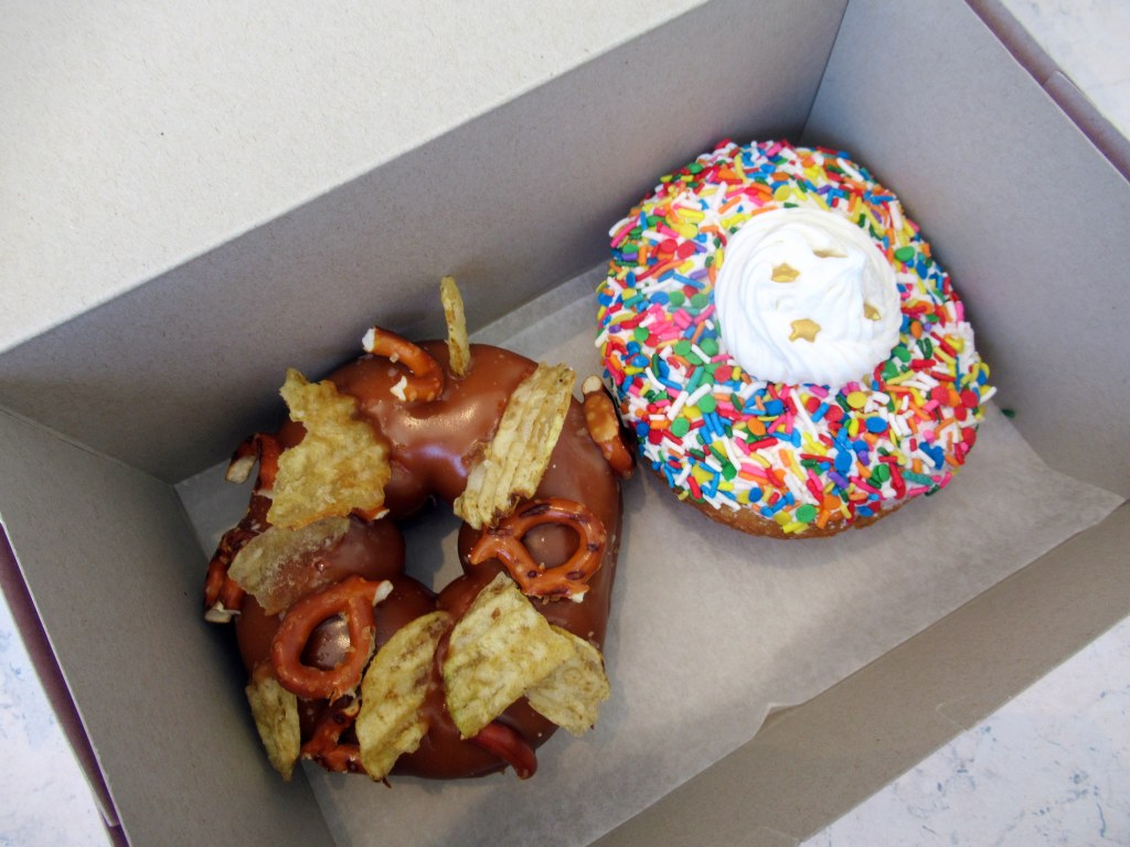We had a weekday morning off together so we went on a doughnut date! Salty caramel pretzel and birthday cake.