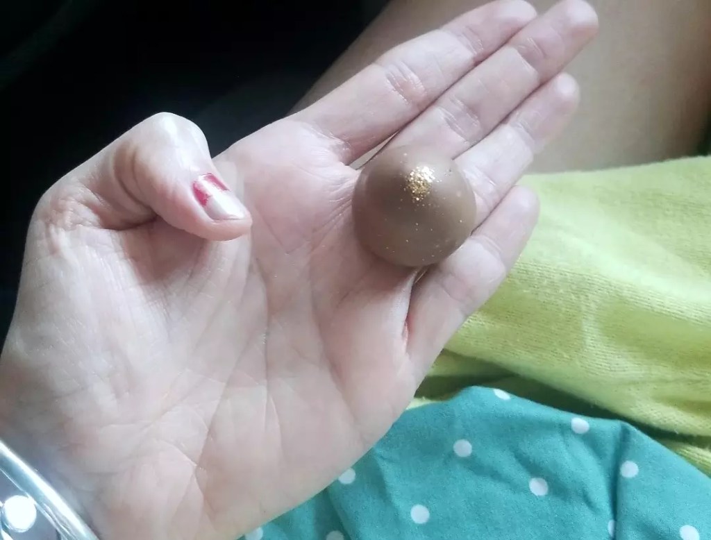 Chicken dumplings in cinnamon oil.