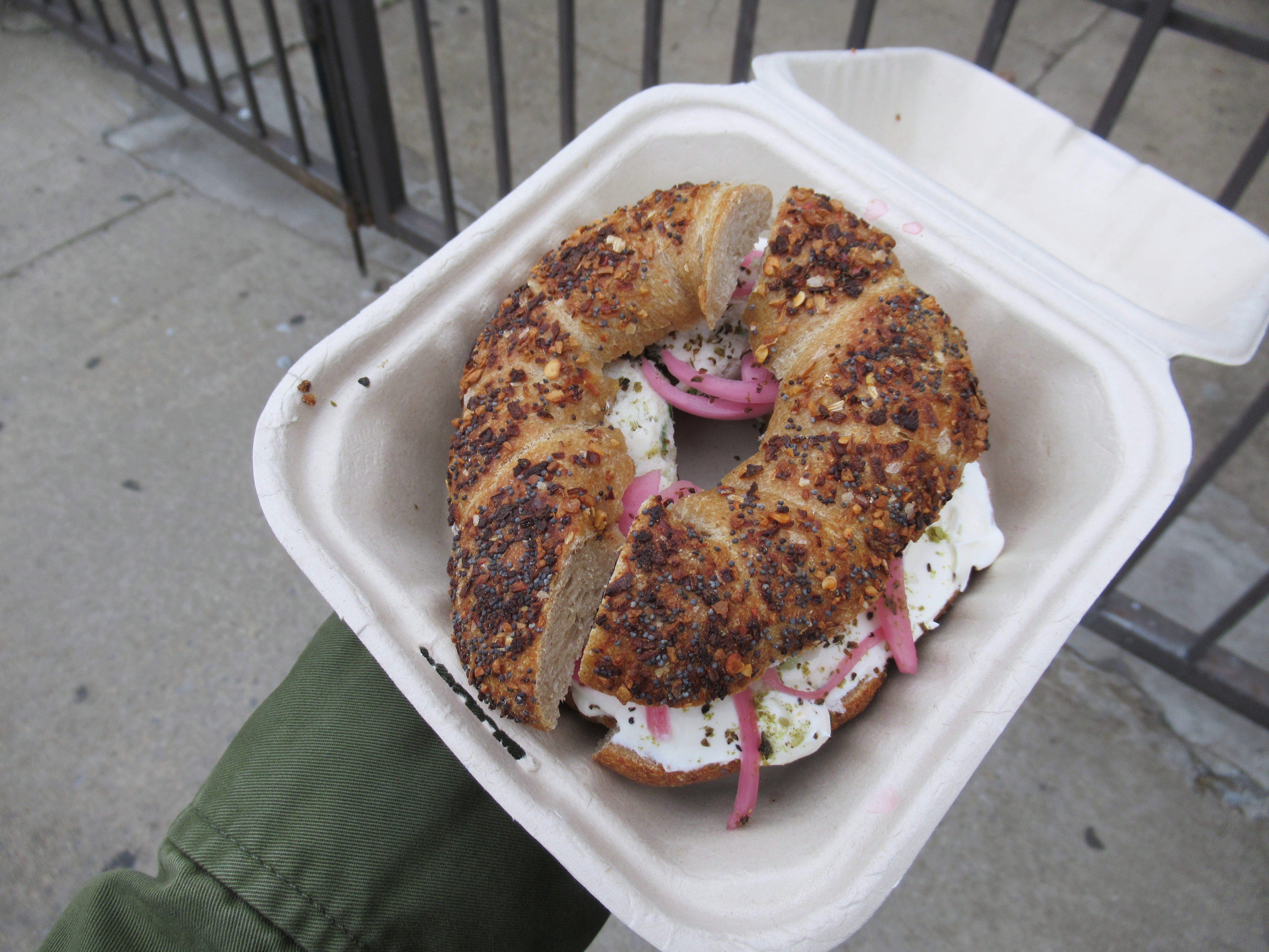 Our spicy everything bagel with smoked mackerel salad and labneh was not bad either.