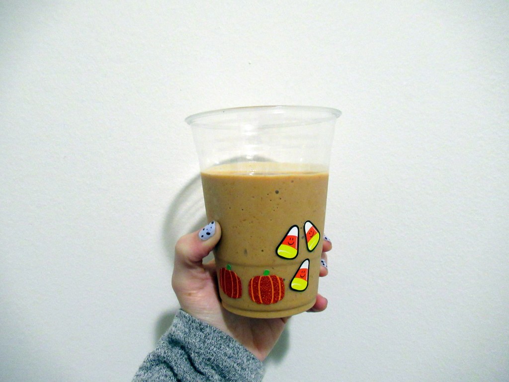 Pumpkin spice latte smoothie! Canned pumpkin, plain skyr, coffee, cold brew powder, ice, cinnamon, maple, and brown sugar.