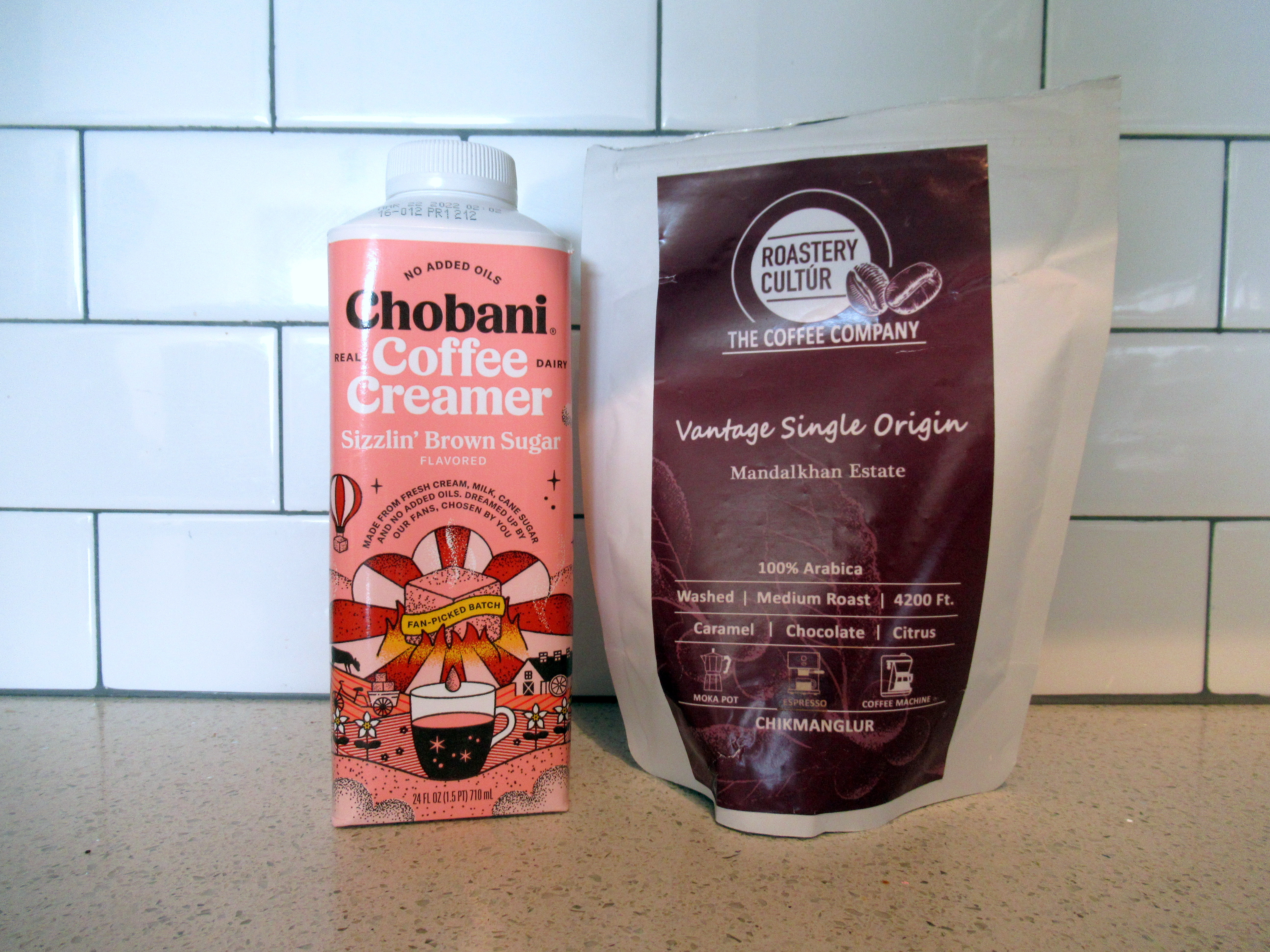 This week’s coffee combo was beans from India with Chobani brown sugar creamer.