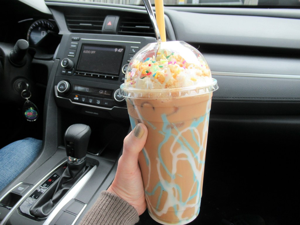 Coffee Booth‘s March special – birthday cake iced latte. I’d like all of my coffees to have an icing swirl!