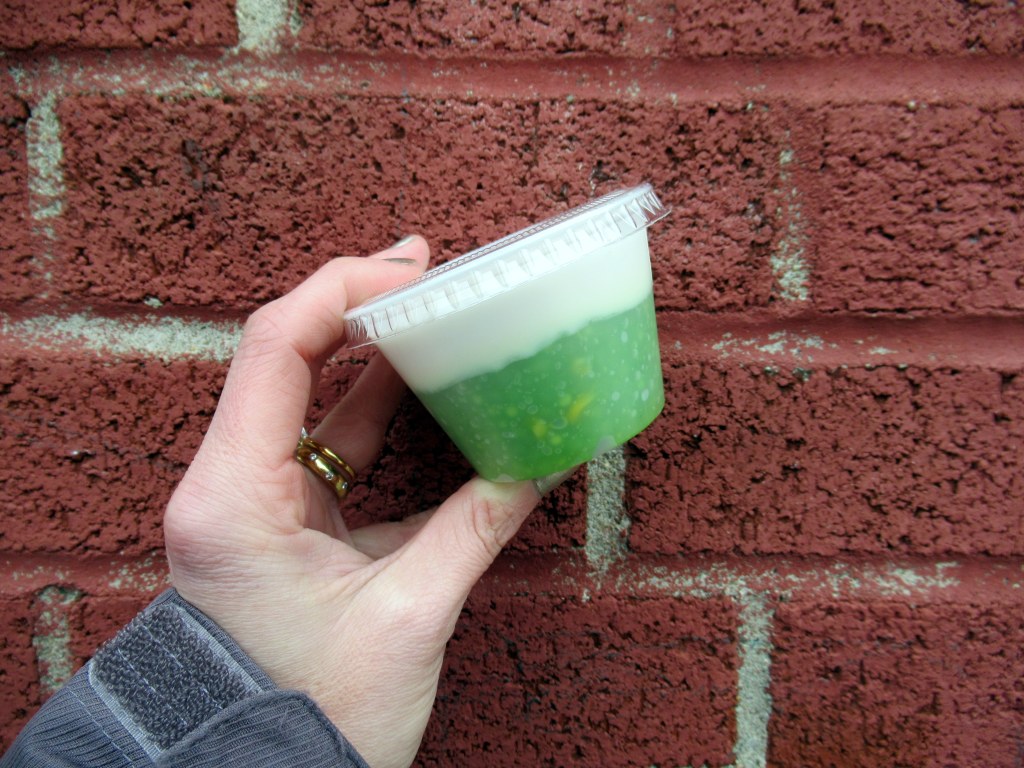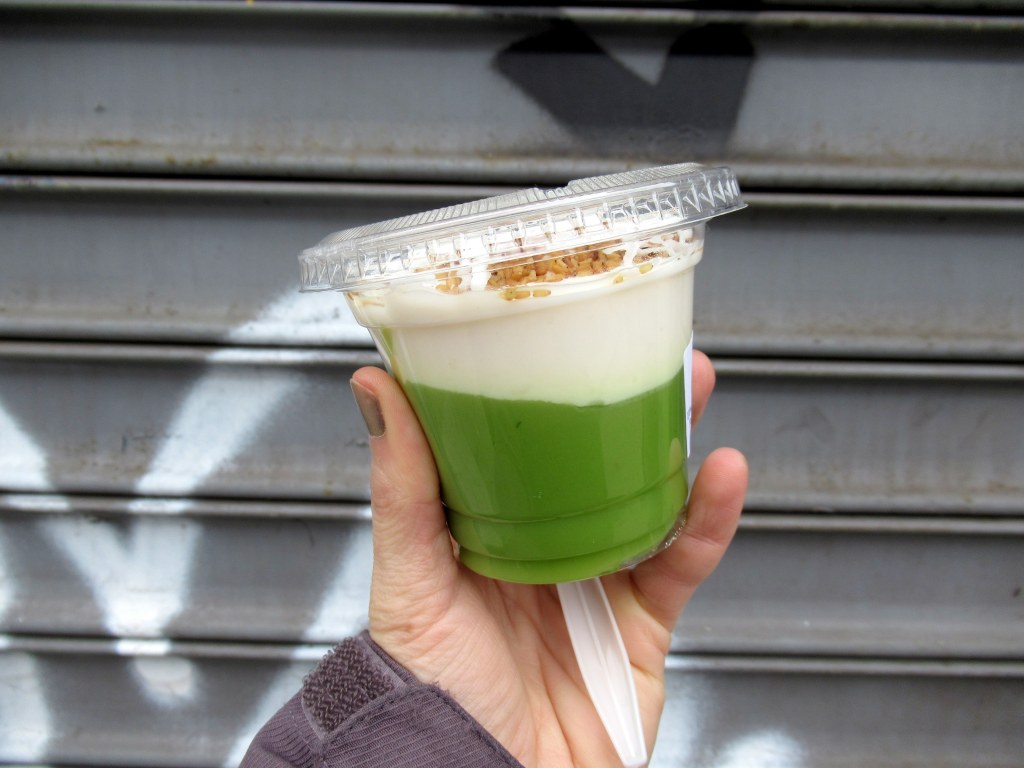 We tried two different kinds of pandan and coconut pudding. A creamy one from Pata Market.