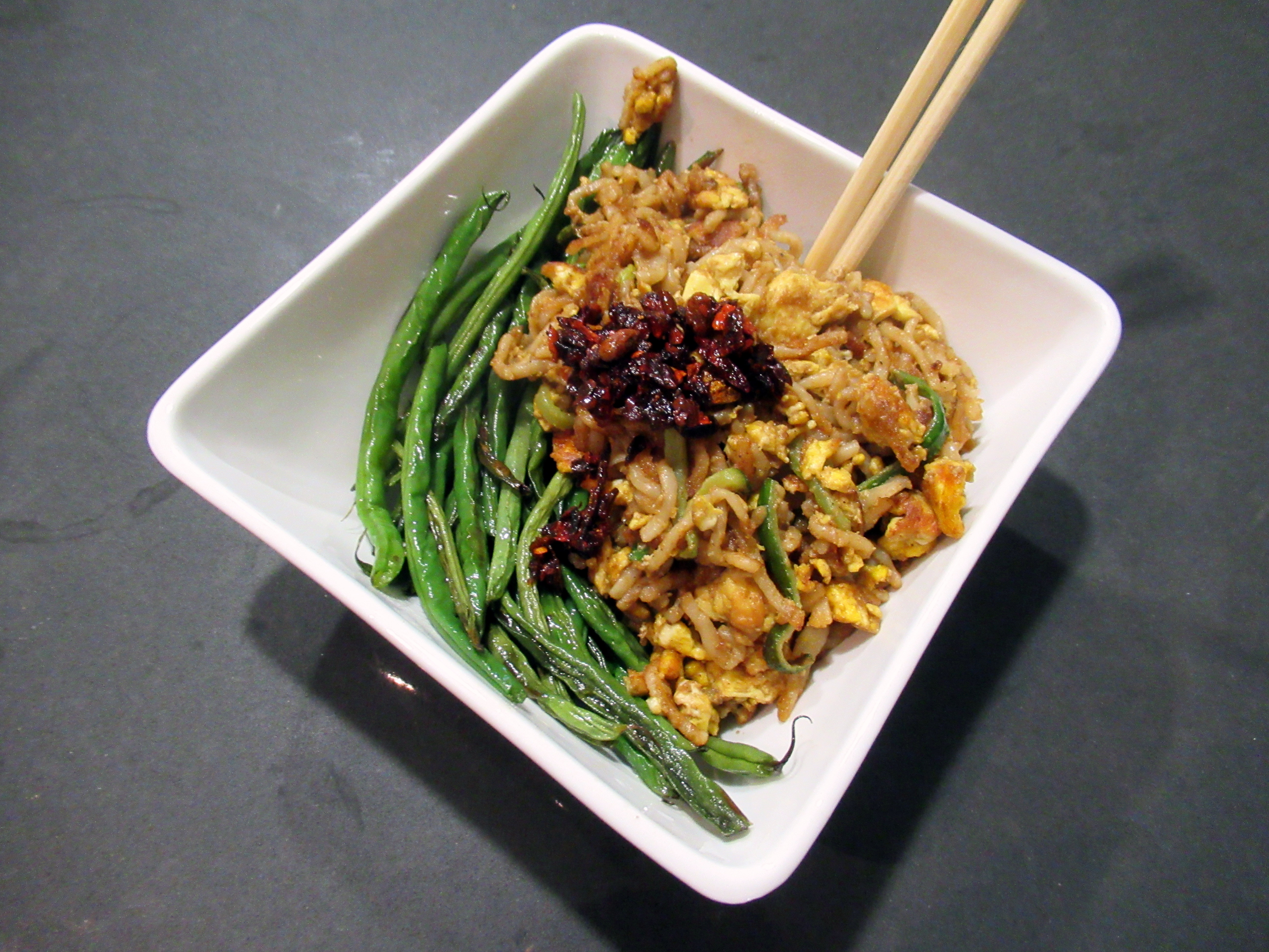 My leftover sesame noodles were even better stir-fried with extra eggs plus green beans and chili crisp.