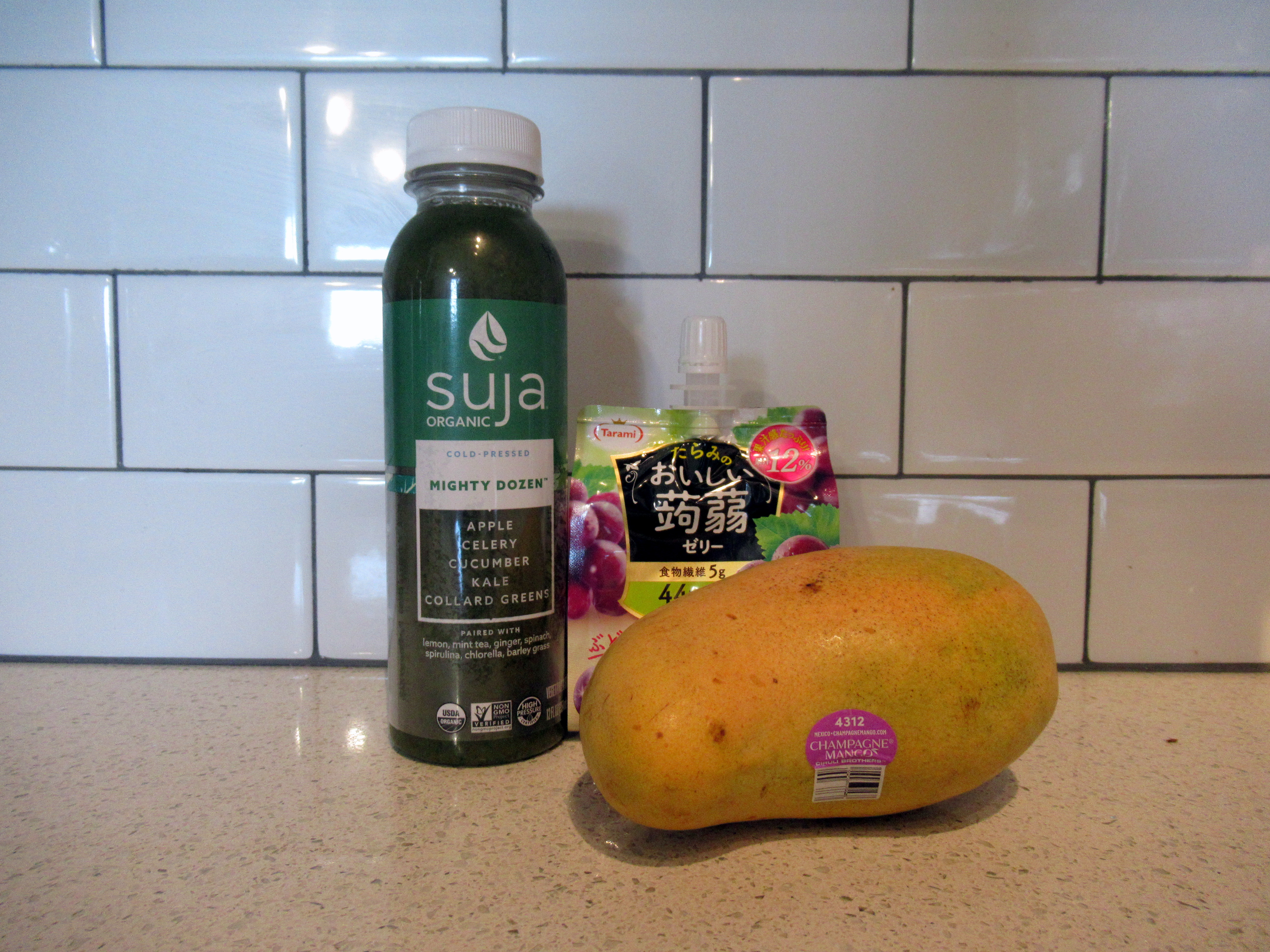 Green juice and a Japanese jelly drink (the mango wasn’t actually ready yet).