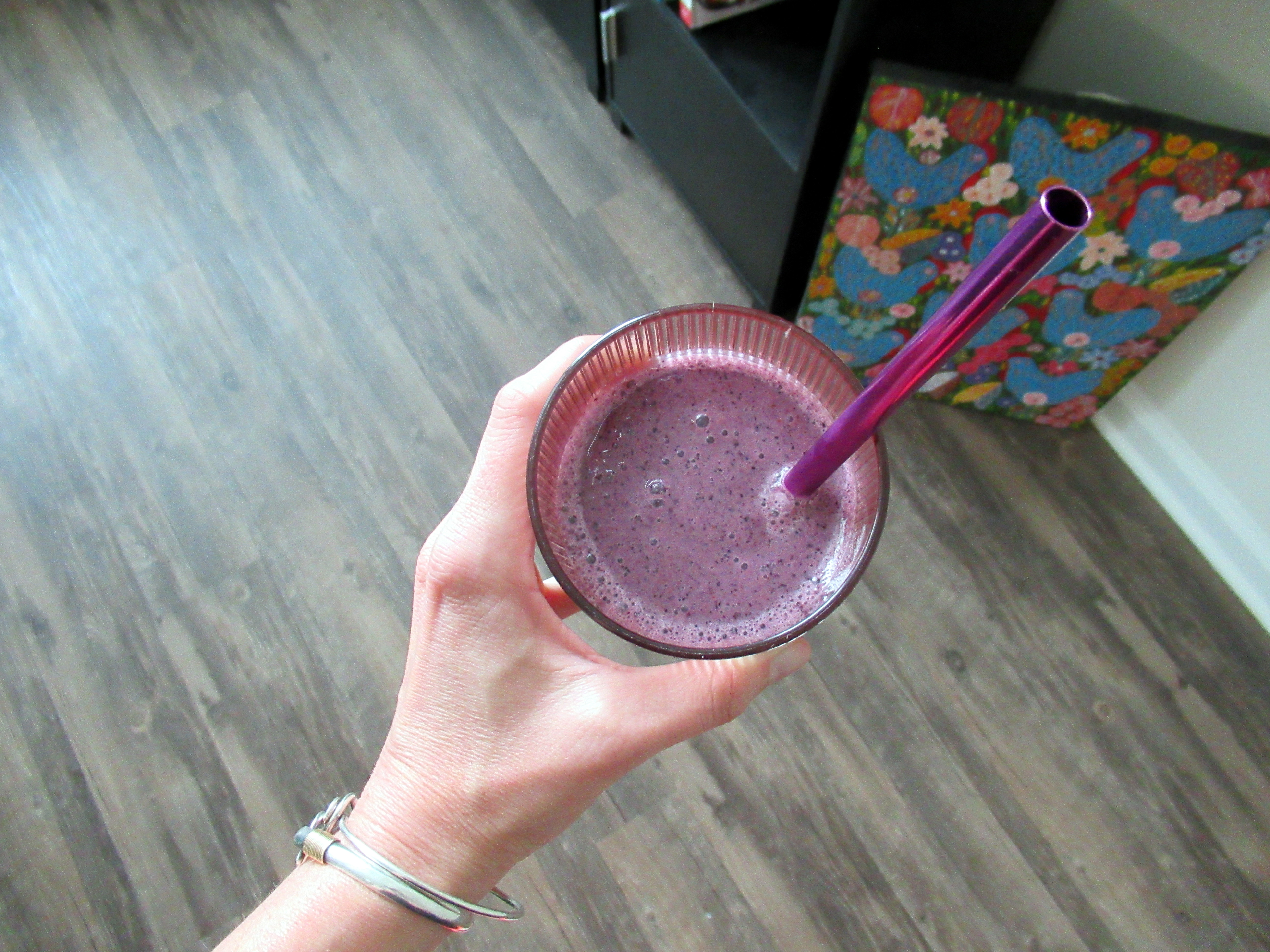Malted blueberry smoothie. Frozen blueberries with chocolate milk, plain Greek yogurt, and malted milk powder.