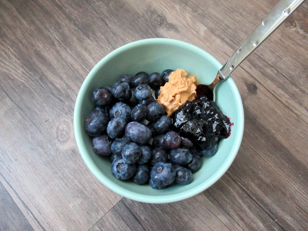 See also – pb&j yogurt bowl. Plain Greek with peanut butter, fancy blueberry jam, and fresh blueberries.