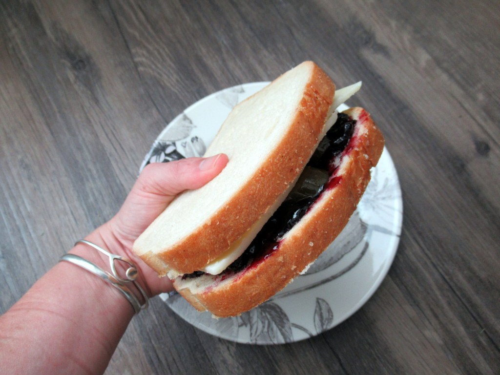 Sweet and spicy. Sourdough, turkey, sharp cheddar, blueberry jam, and pickled jalpenos.