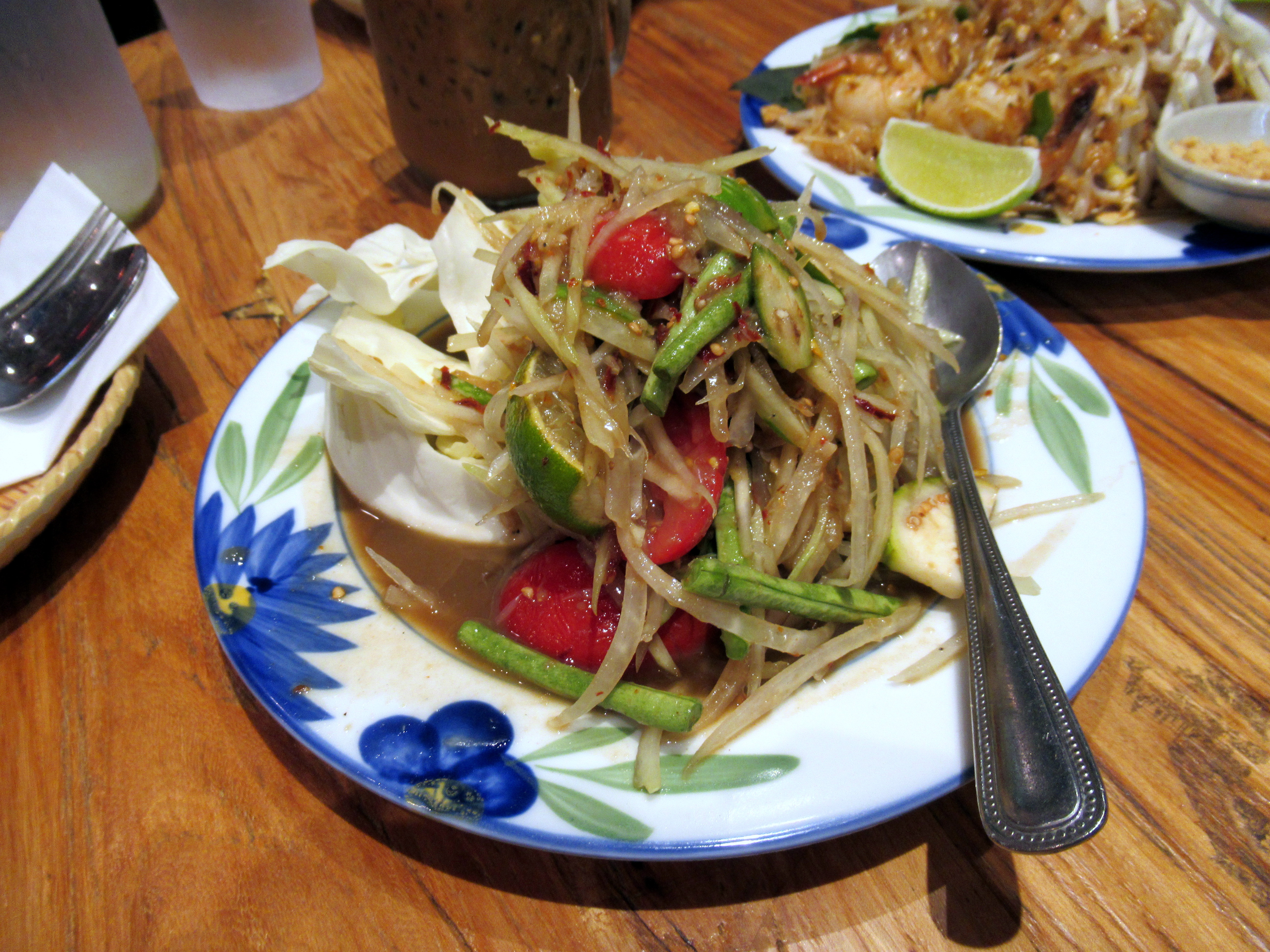 We finally made it to Zaab Zaab, a very well-loved Isaan Thai spot in Elmhurst. Everything we got was fantastic. The spice level was exactly to my liking and I was glad I ordered the creamy cold brew with condensed milk. Green papaya salad.