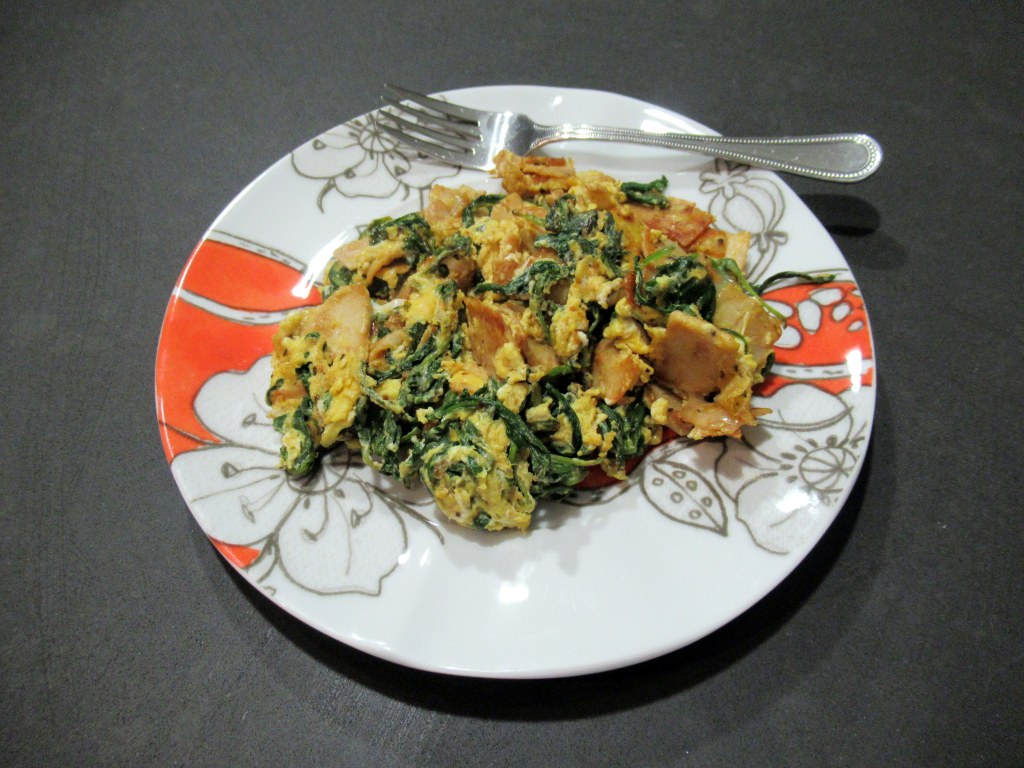 Dinners this week were all greatly enjoyed. Scrambled eggs with sliced turkey, sharp cheddar, garlic, and baby arugula.