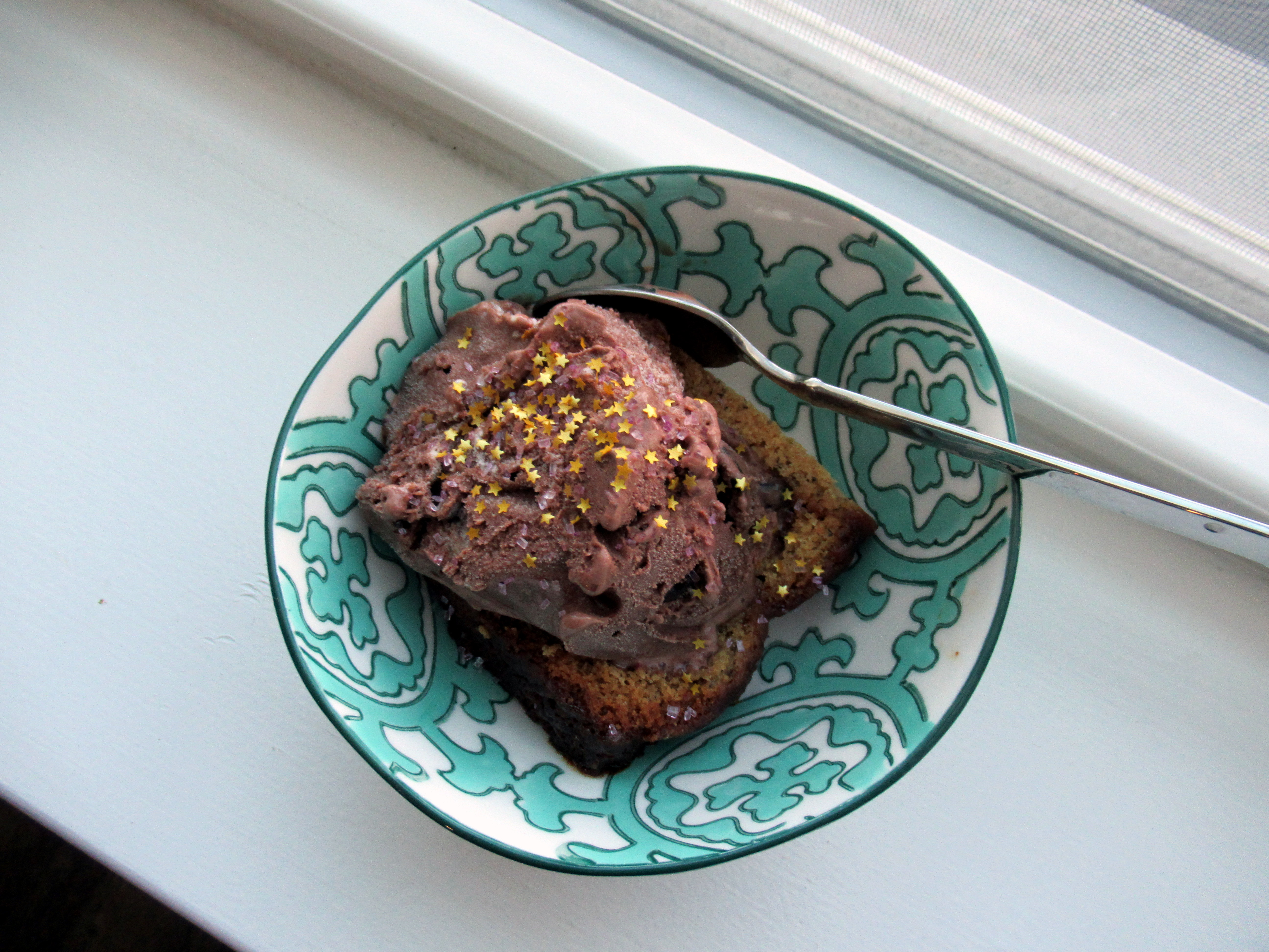 An amazing sundae – warm banana bread with Ben & Jerry’s Phish food and sprinkles.