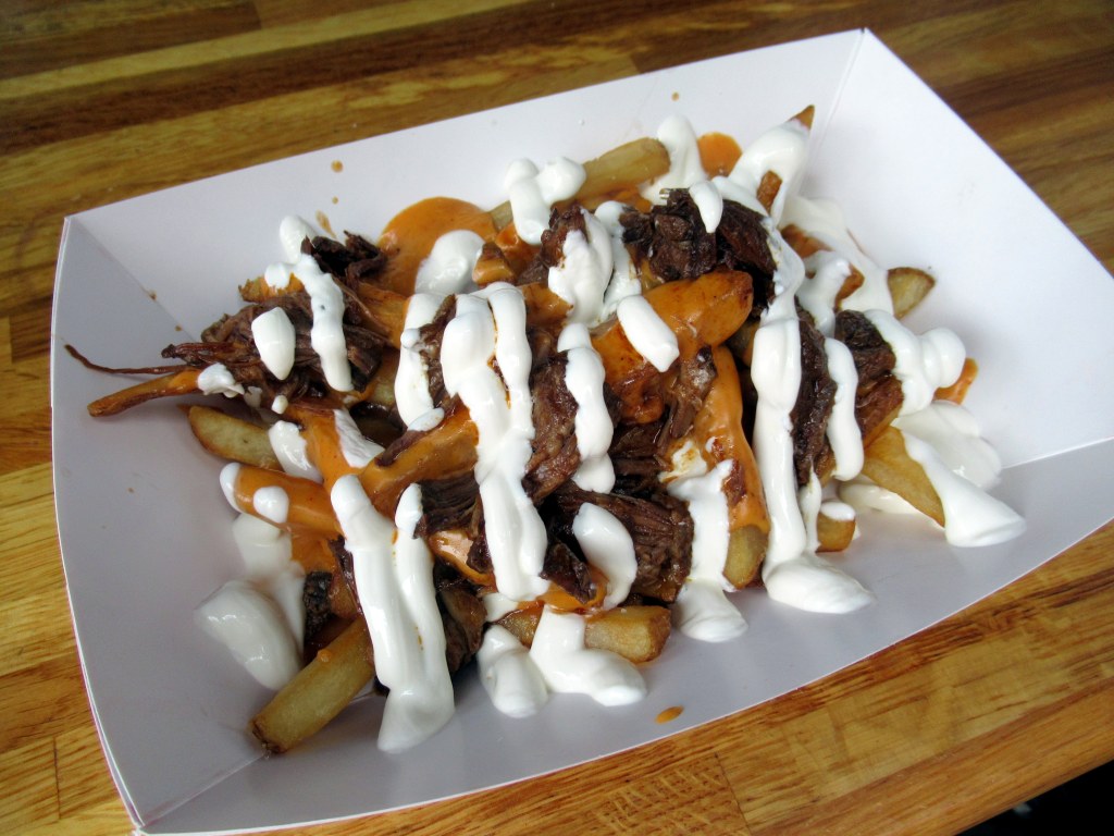 Fries with beer cheese and short ribs from Greenpoint Brewery; all three of us were smitten.