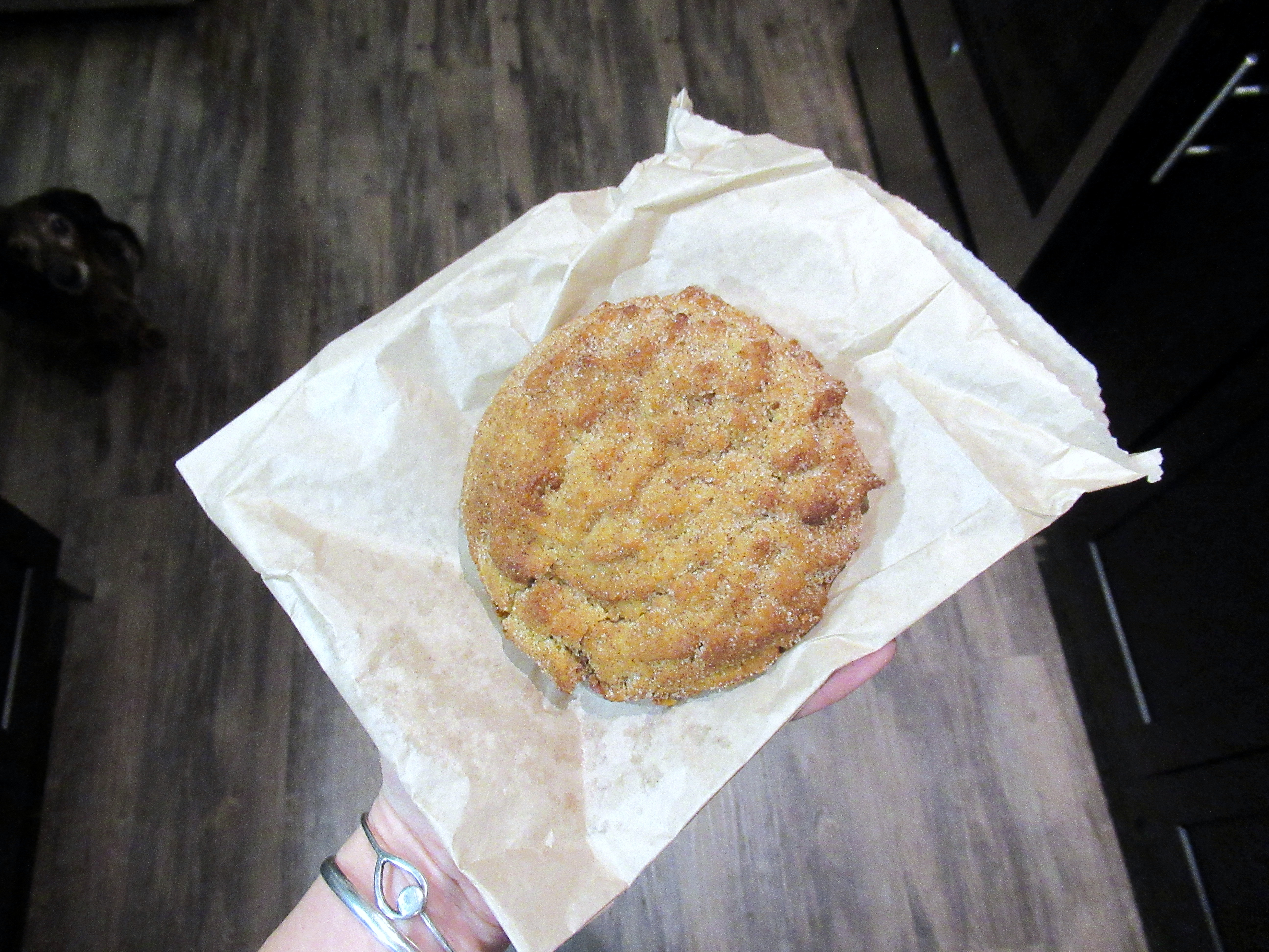 Great new flavor from Chip – a brown sugar cookie made with apple butter, stuffed with a caramel apple filling, and topped with cinnamon sugar.