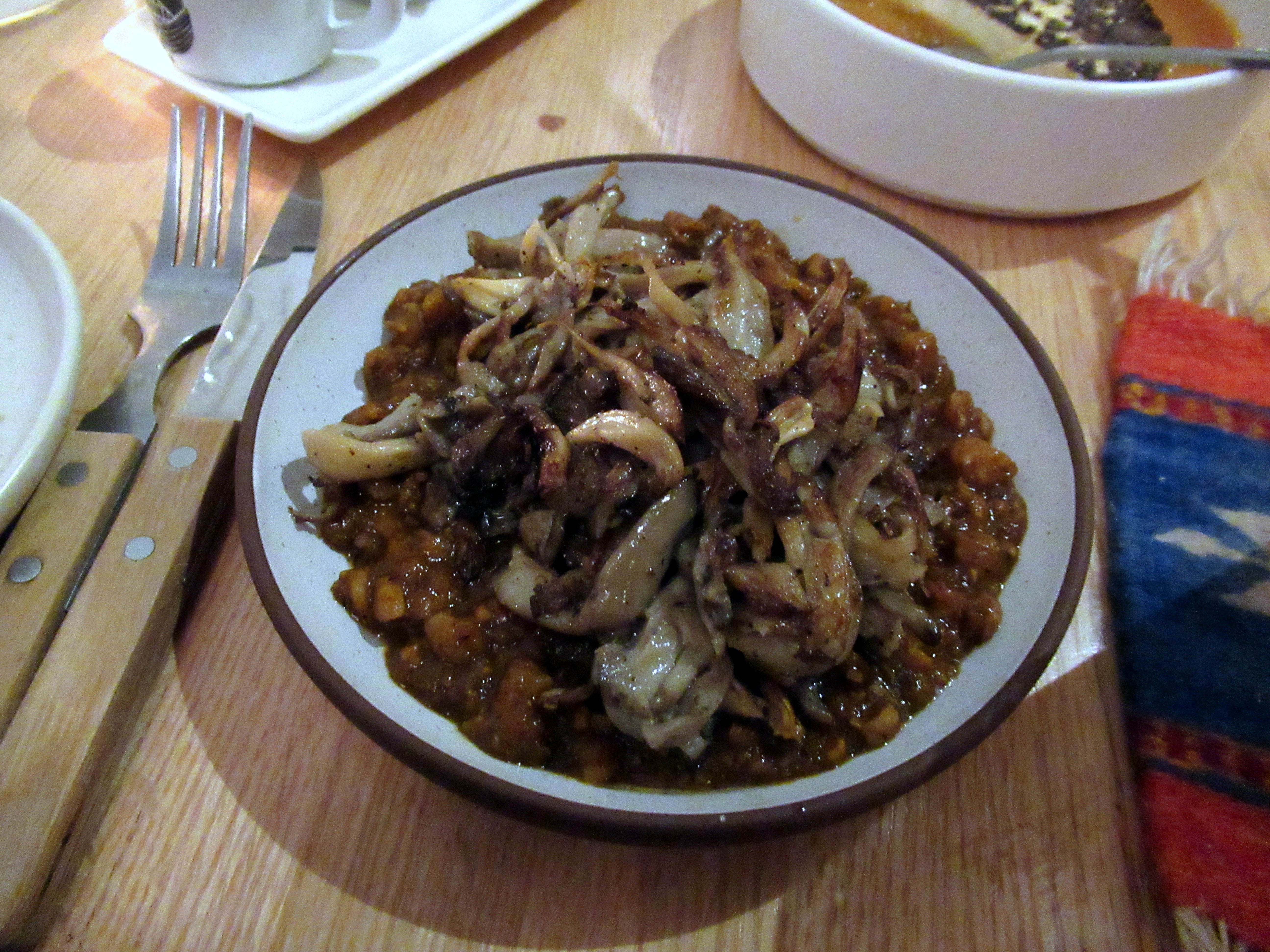 And I ordered the oyster mushrooms with cracked corn, hoja santa, and guajillo mole. Plus housemade tortillas.