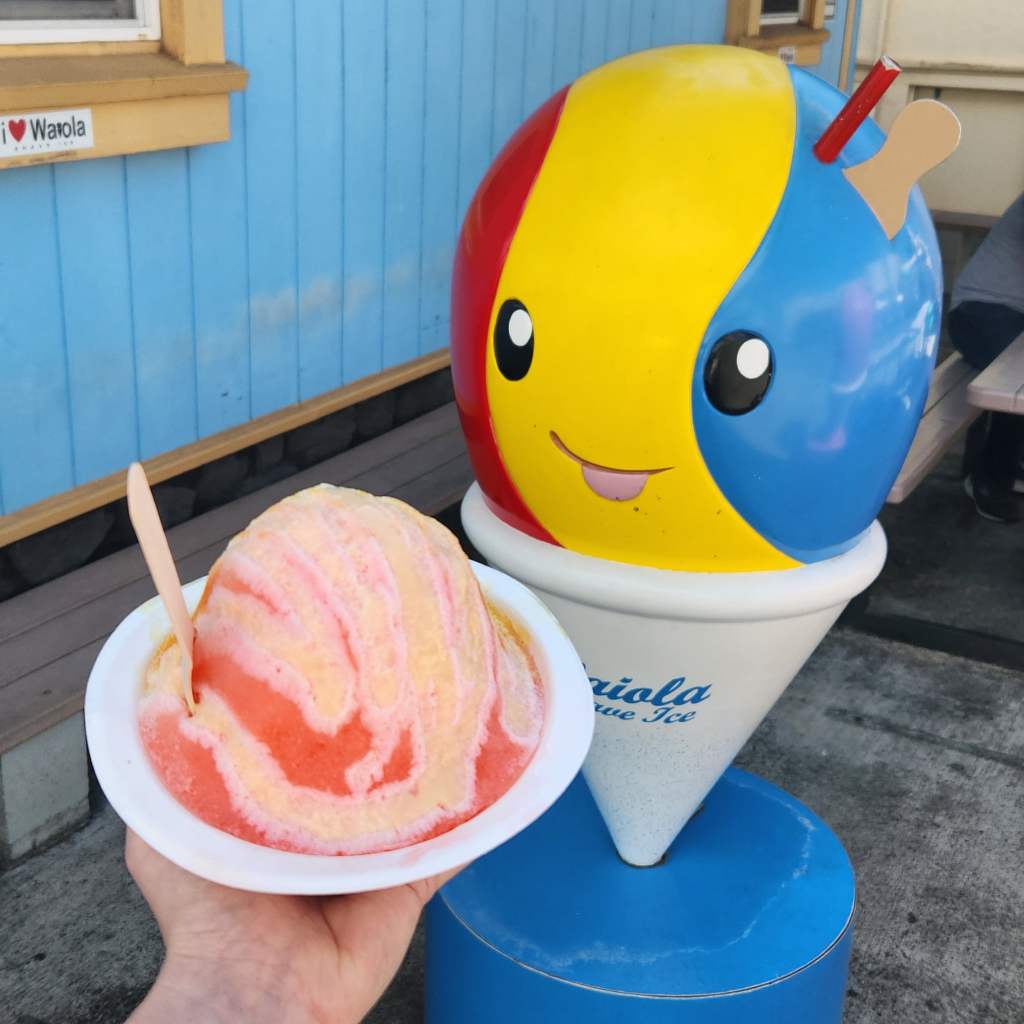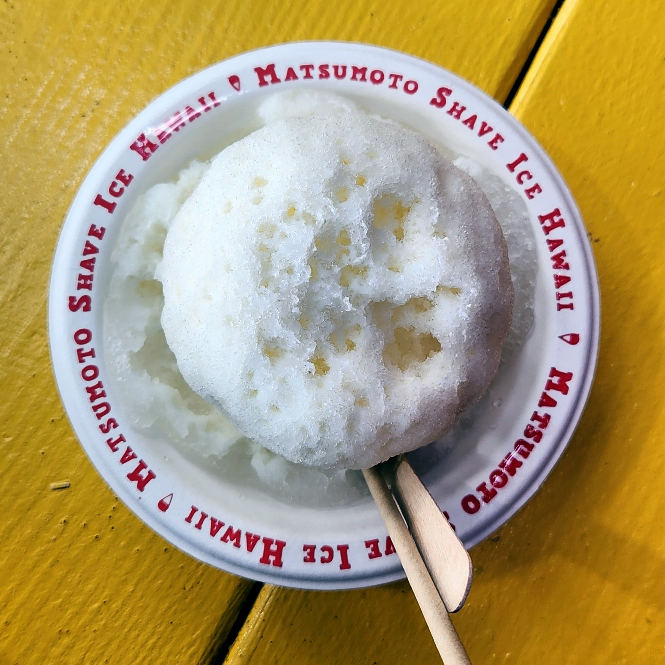 Shave Ice! We went to Waiola Shave Ice and Matsumoto Shave Ice. The boring looking one was actually white cake and yuzu (!!!) with vanilla ice cream and sweetened condensed milk.