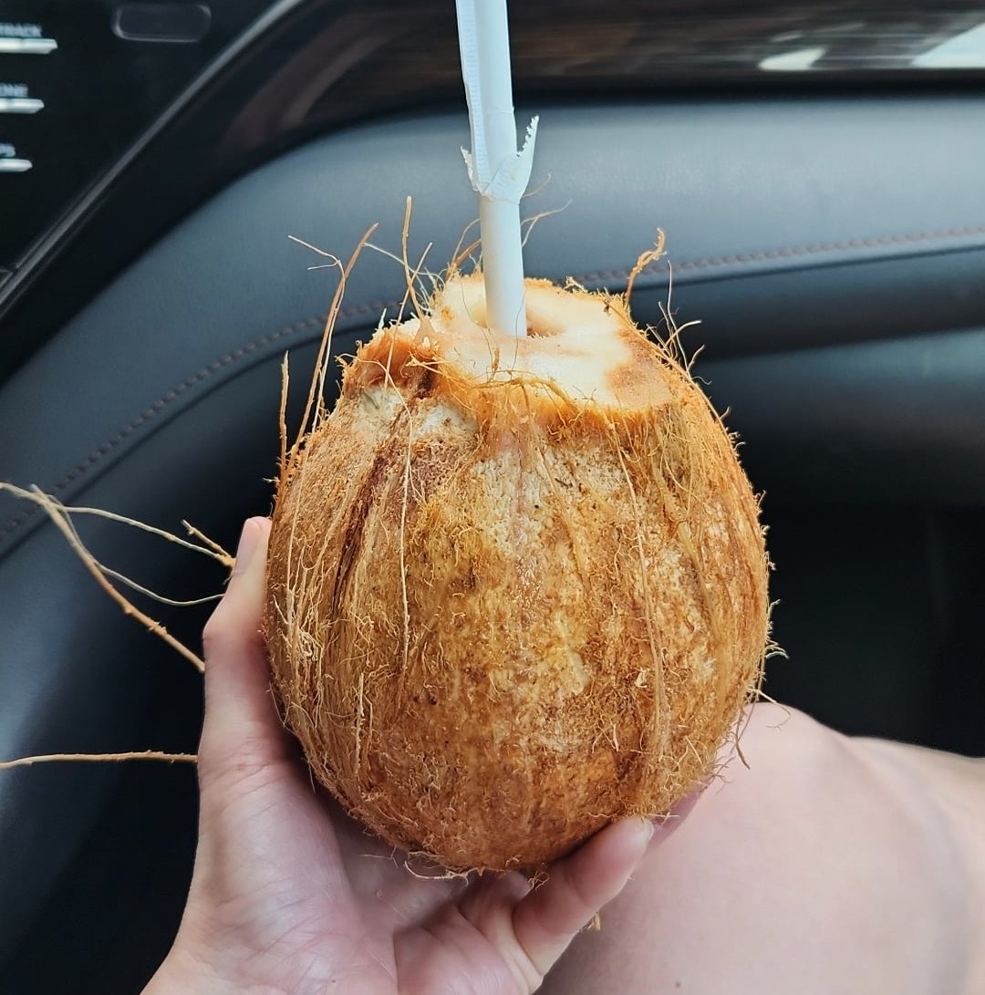 Local fruits from a roadside stand. Starfruit, passionfruit, and coconut.