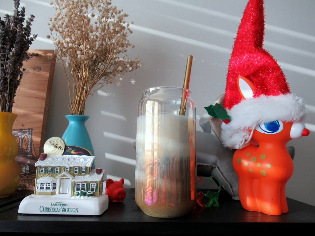 Dalgona iced coffee with eggnog.