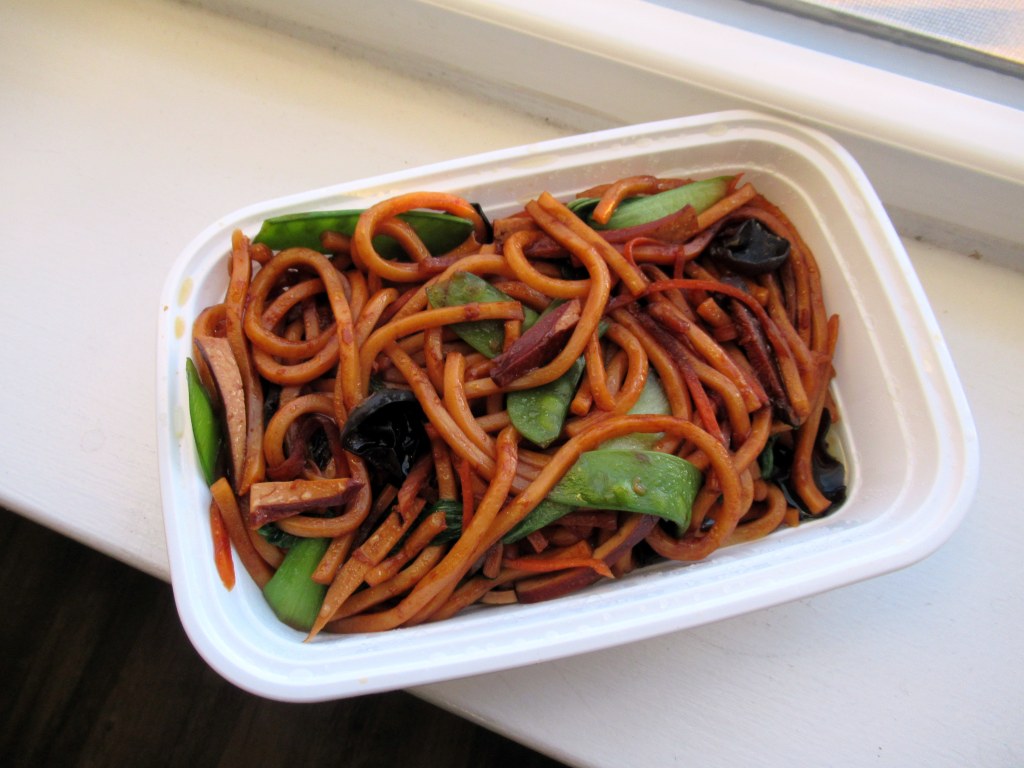 Chinese take-out from Blue Wave. I got fantastic veggie stir-fried udon. Also the best scallion pancakes I’ve ever eaten.