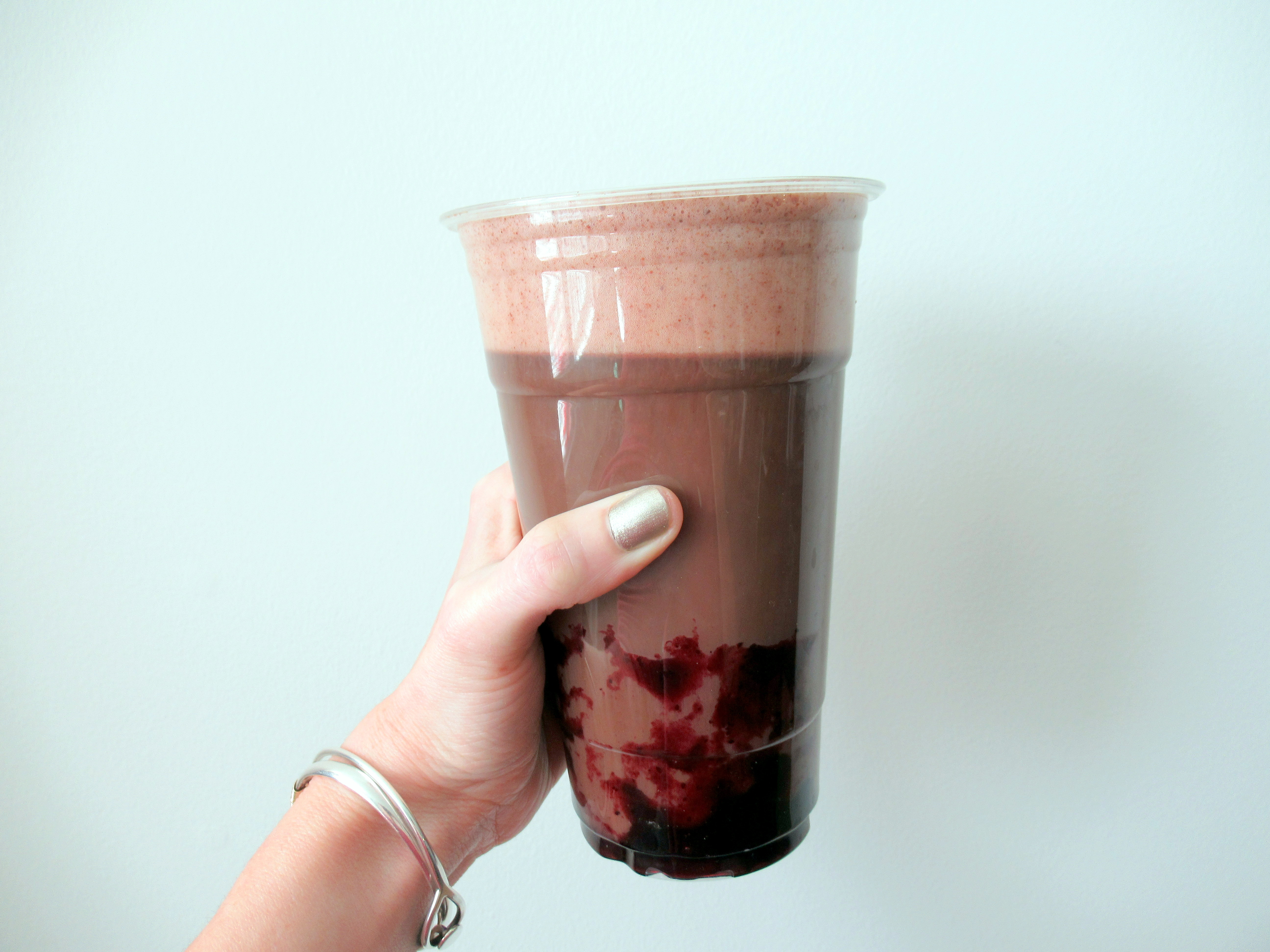 Jelly doughnut iced coffee for the last day of Hanukkah. Iced coffee with blueberry preserves and skim milk frothed with cinnamon, cocoa powder, and brown sugar.