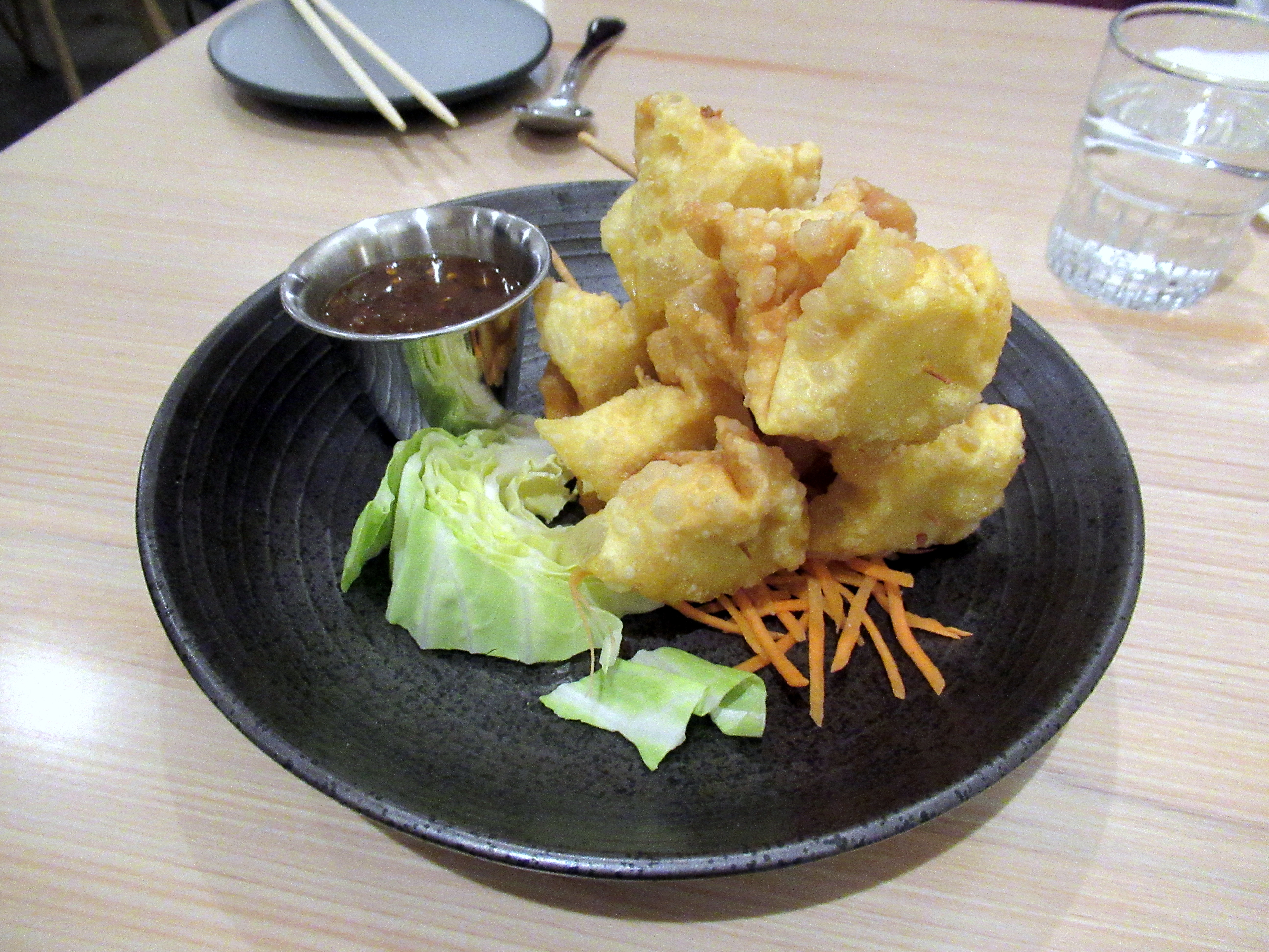 We shared Giaw Tod – fried wontons stuffed with fish balls and served with a spicy tamarind sauce.