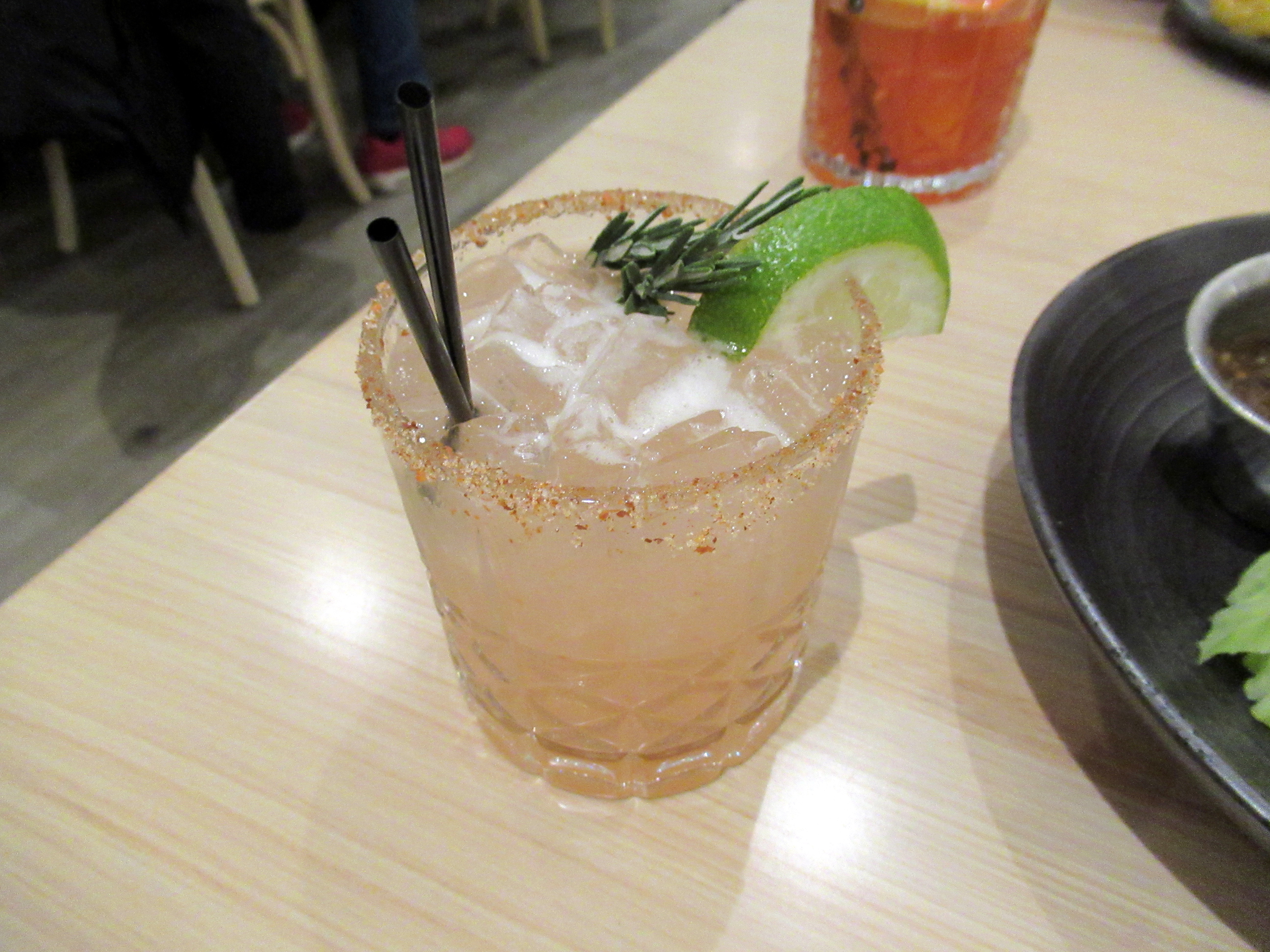 Adam and I had a great dinner at When in Bangkok. This was tequila, triple sec, and guava juice with a Thai-style chili salt rim.