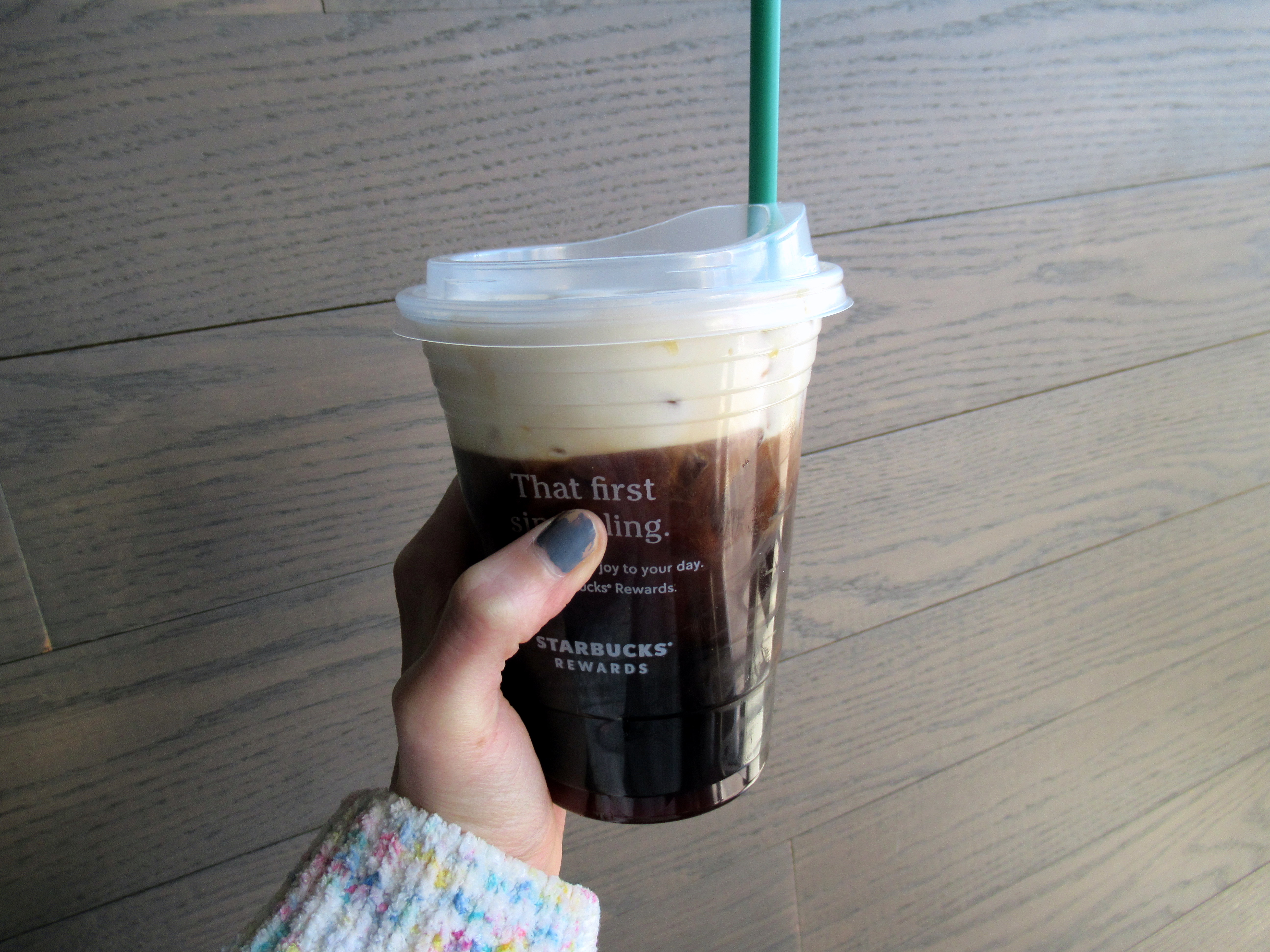 Starbuck’s iced espresso with their new pistachio cream cold foam. I’m a fan.