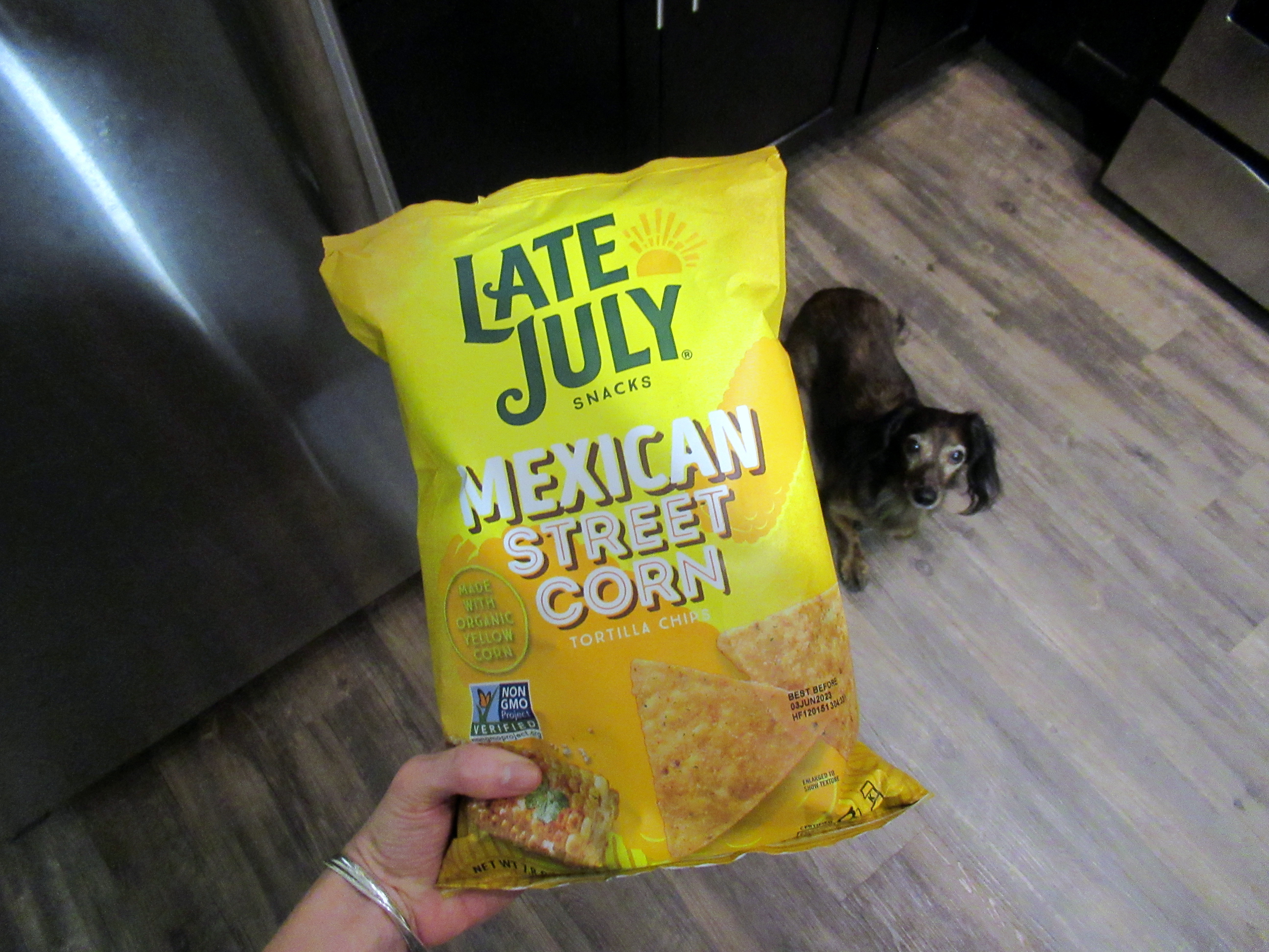 Late July street corn seasoned tortilla chips. Good but not great, I would buy them again but definitely wouldn’t eat them with salsa.