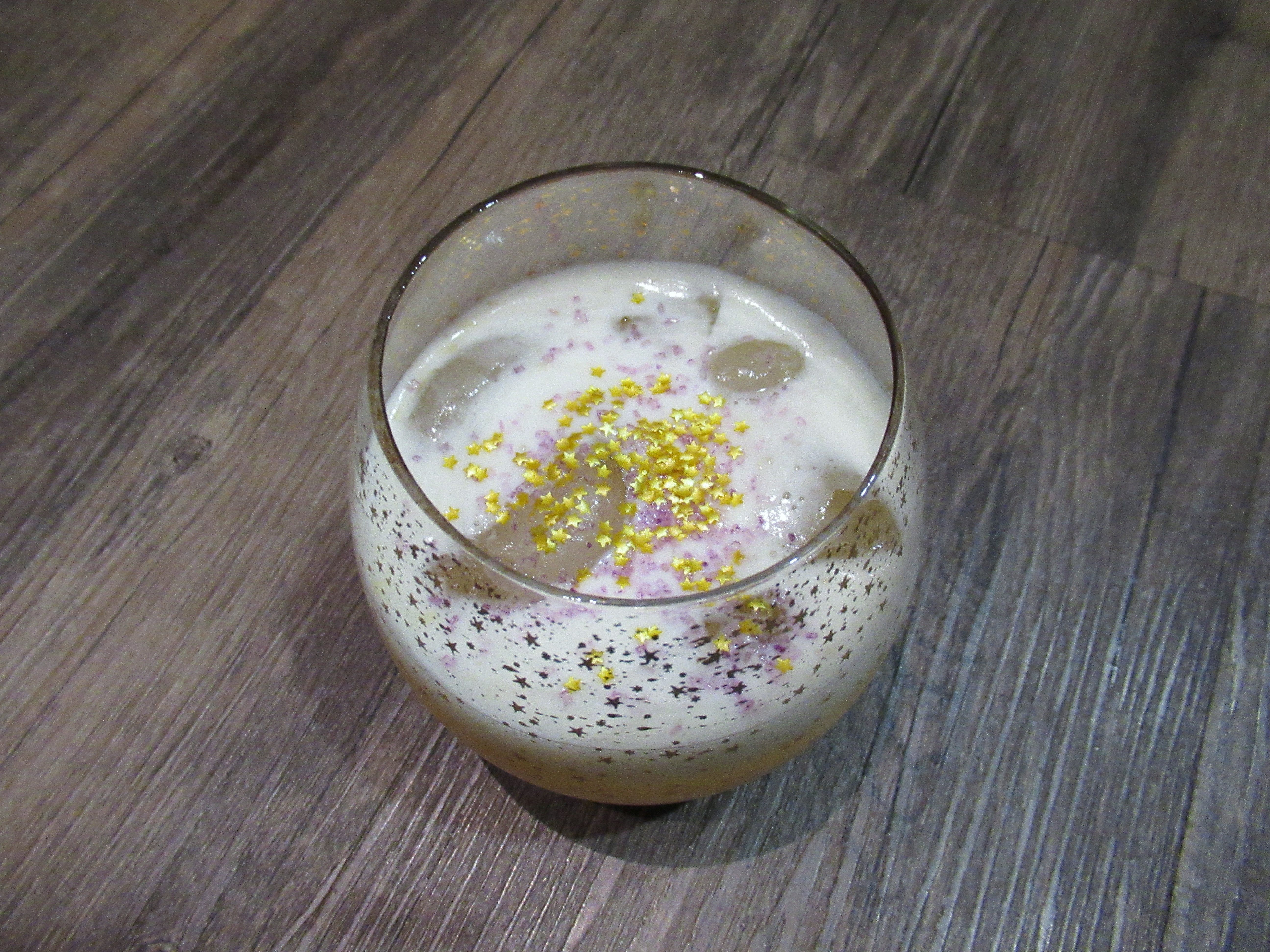 Birthday Cake Shake – Vanilla cake whiskey vigorously shaken with amaretto, fresh orange juice, sugar, and an egg white.
