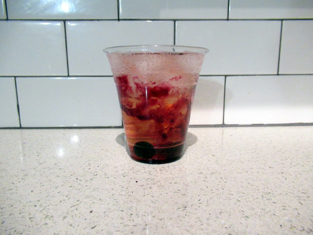 Peanut Butter and Jellies – Peanut butter whiskey (plus a bit of vodka for balance) with blueberry jam, Luxardo cherry, and strawberry seltzer.