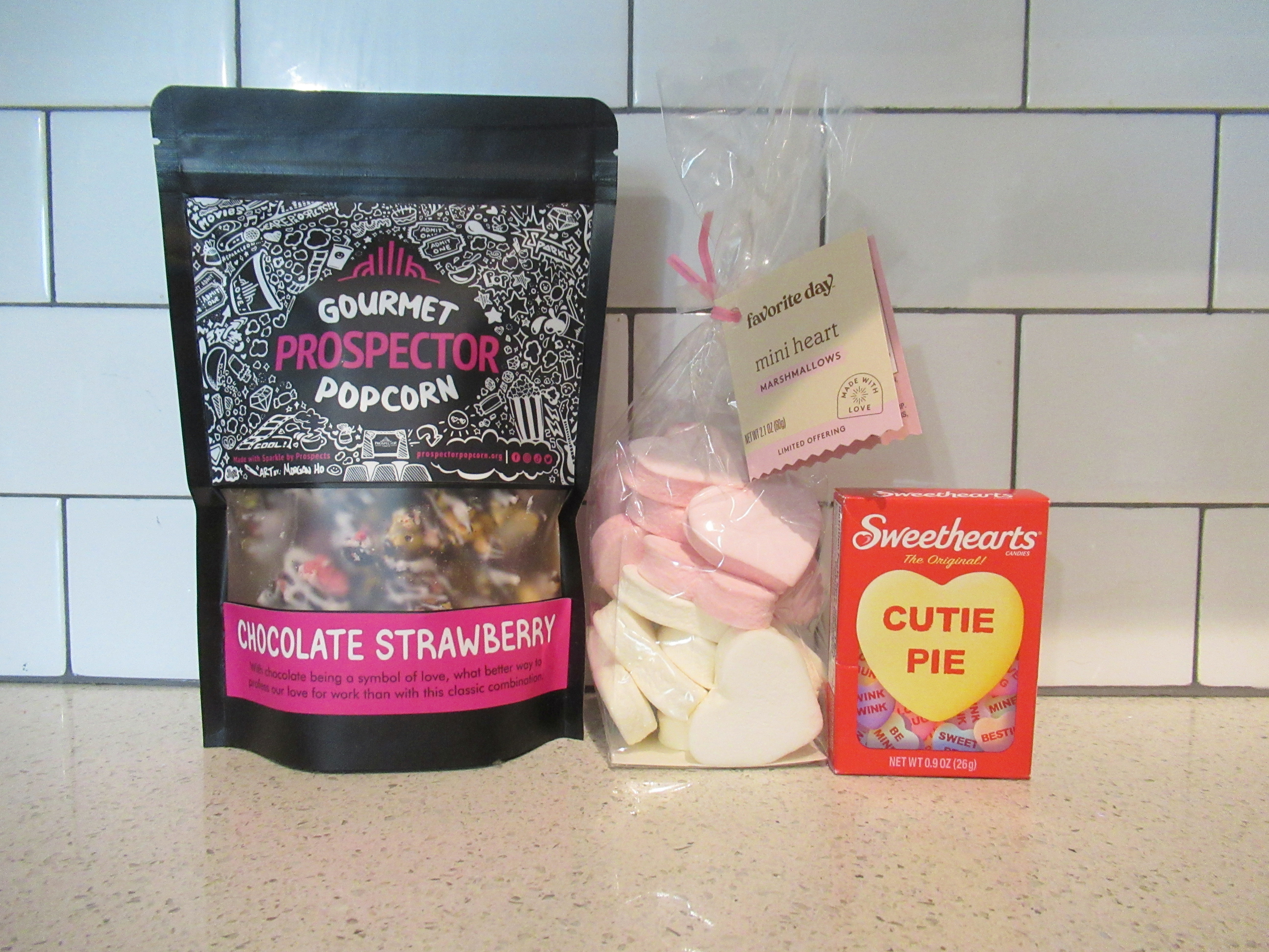 Prospector Popcorn’s chocolate strawberry flavor was a 9.9/10. We also had themed marshmallows and conversation hearts.