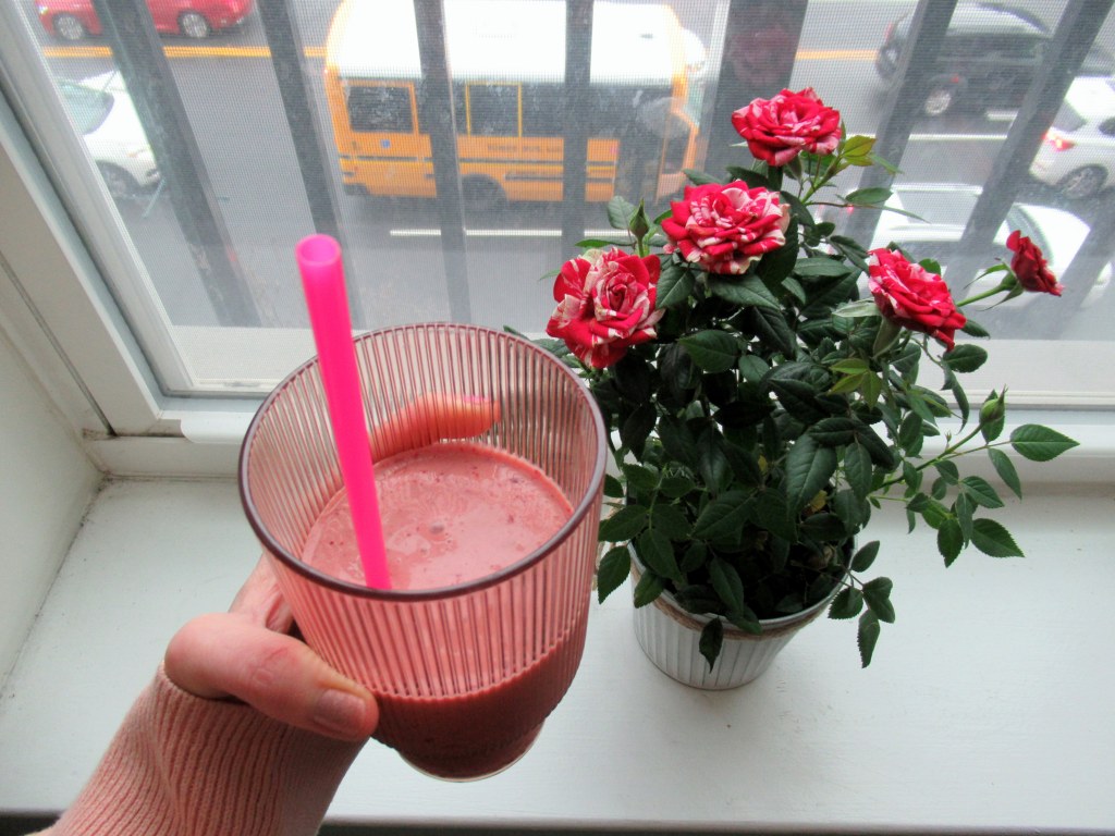 Cherry cheesecake smoothie. Frozen cherries with Greek yogurt, cream cheese, maple, and cinnamon.