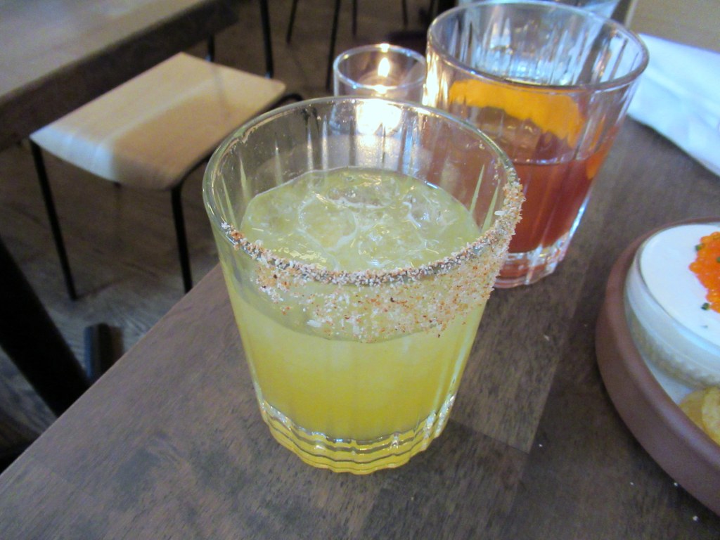 Dinner at Virginia’s. Spicy Marg 2.0 – tequilla, passion fruit, lime, Thai chili oil, and spicy salt.