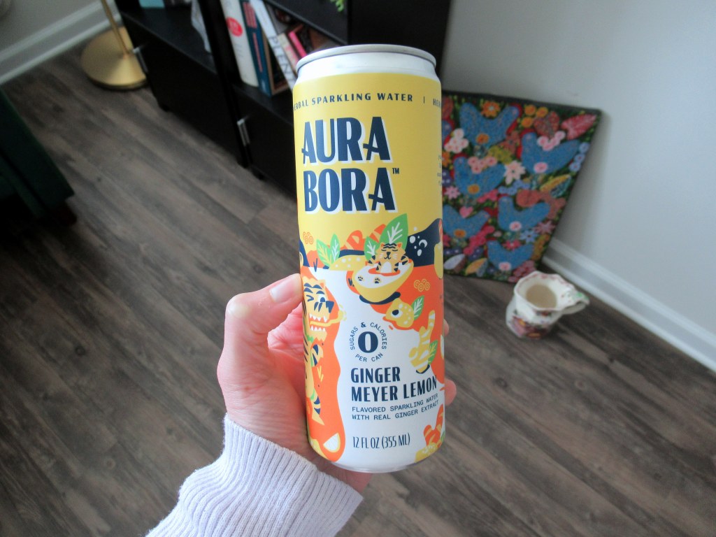 I love this sort of spicy ginger and meyer lemon seltzer from Aura Bora.