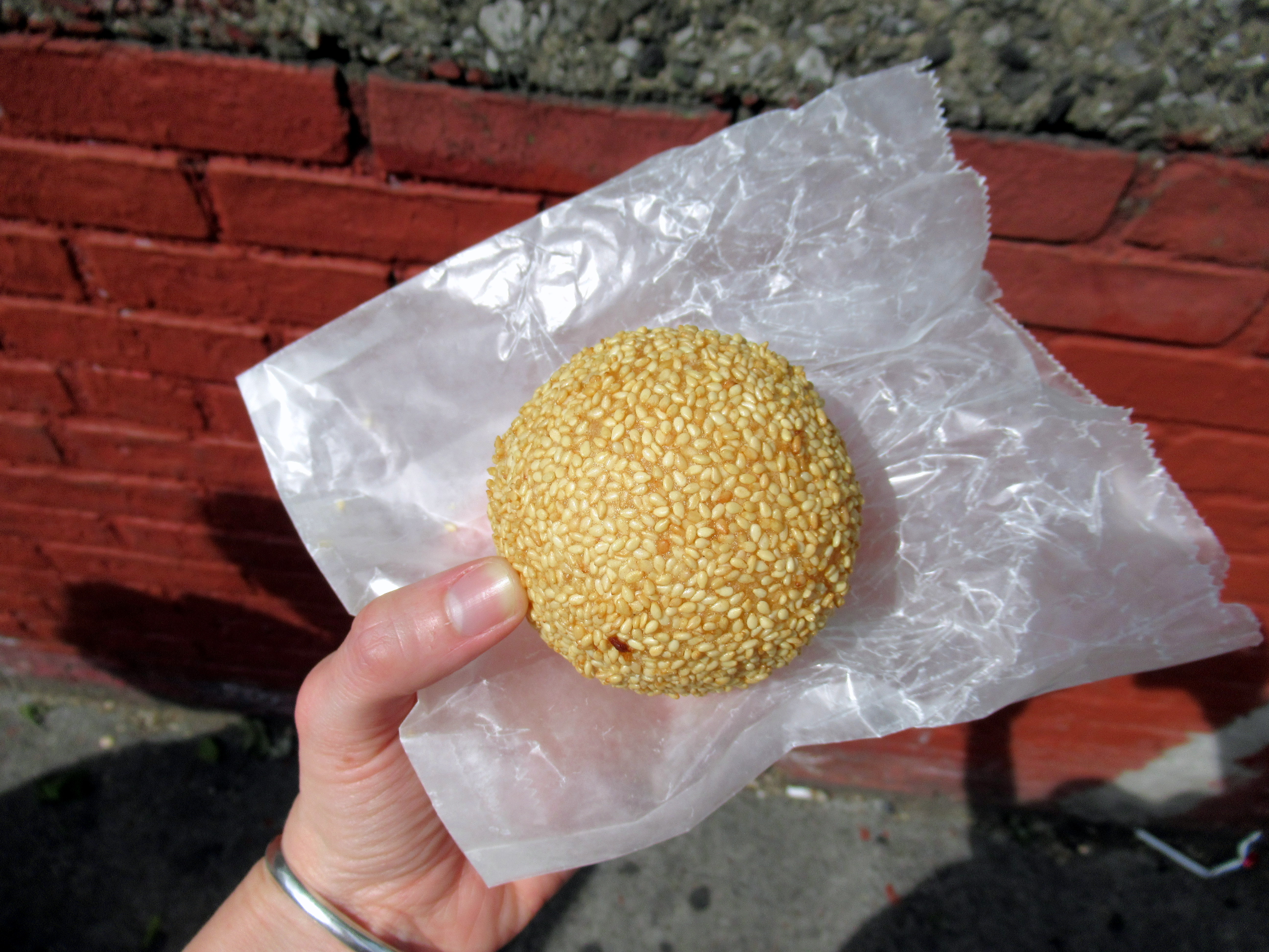 Red bean stuffed, sesame coated mochi from Lucky King Bakery are a can’t miss.