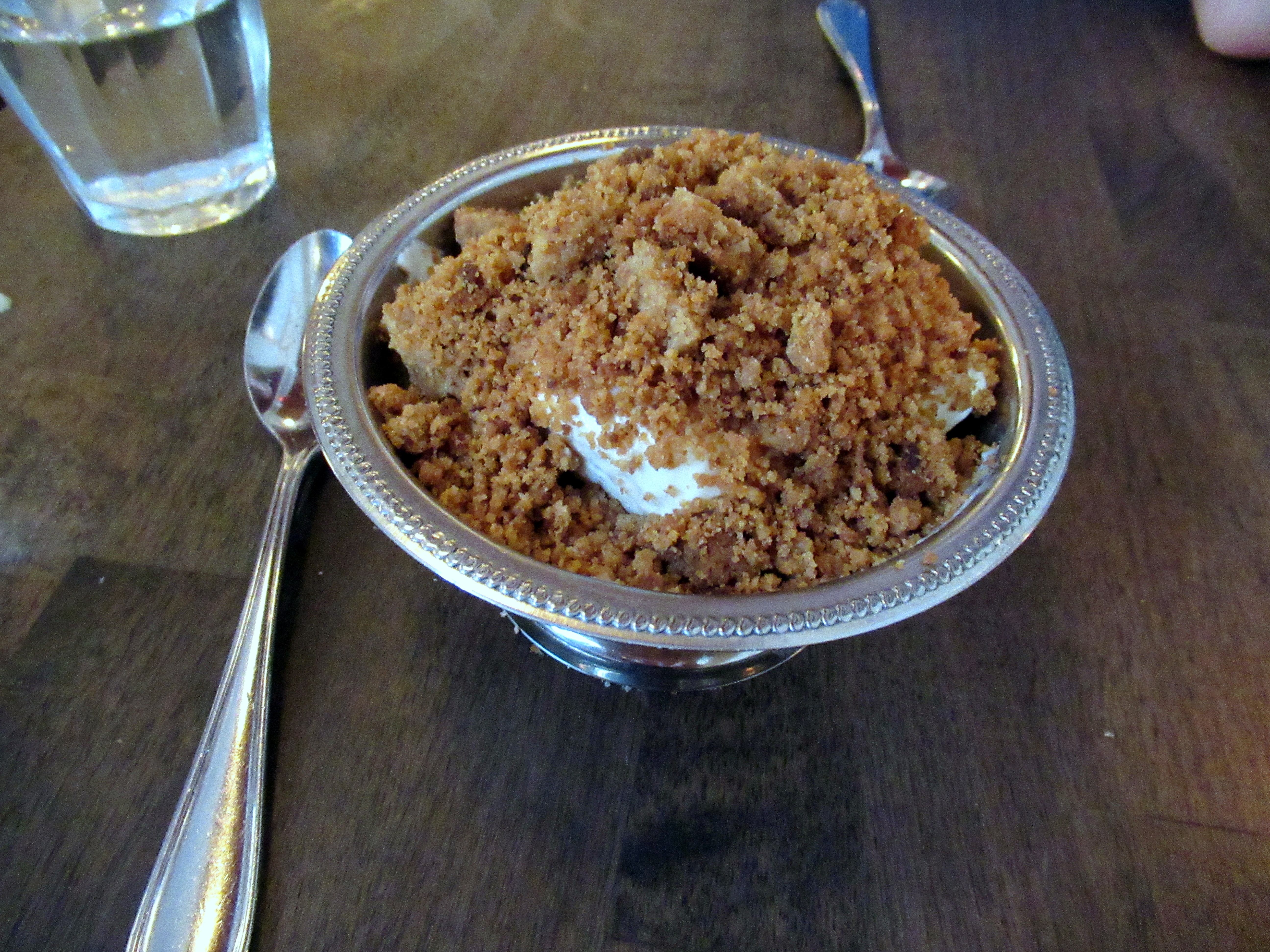 We got the “banana pudding” for dessert; bananas with cookie crunch and whipped cream. Adam liked it because it tasted good and I hated it because there was not even a hint of pudding.