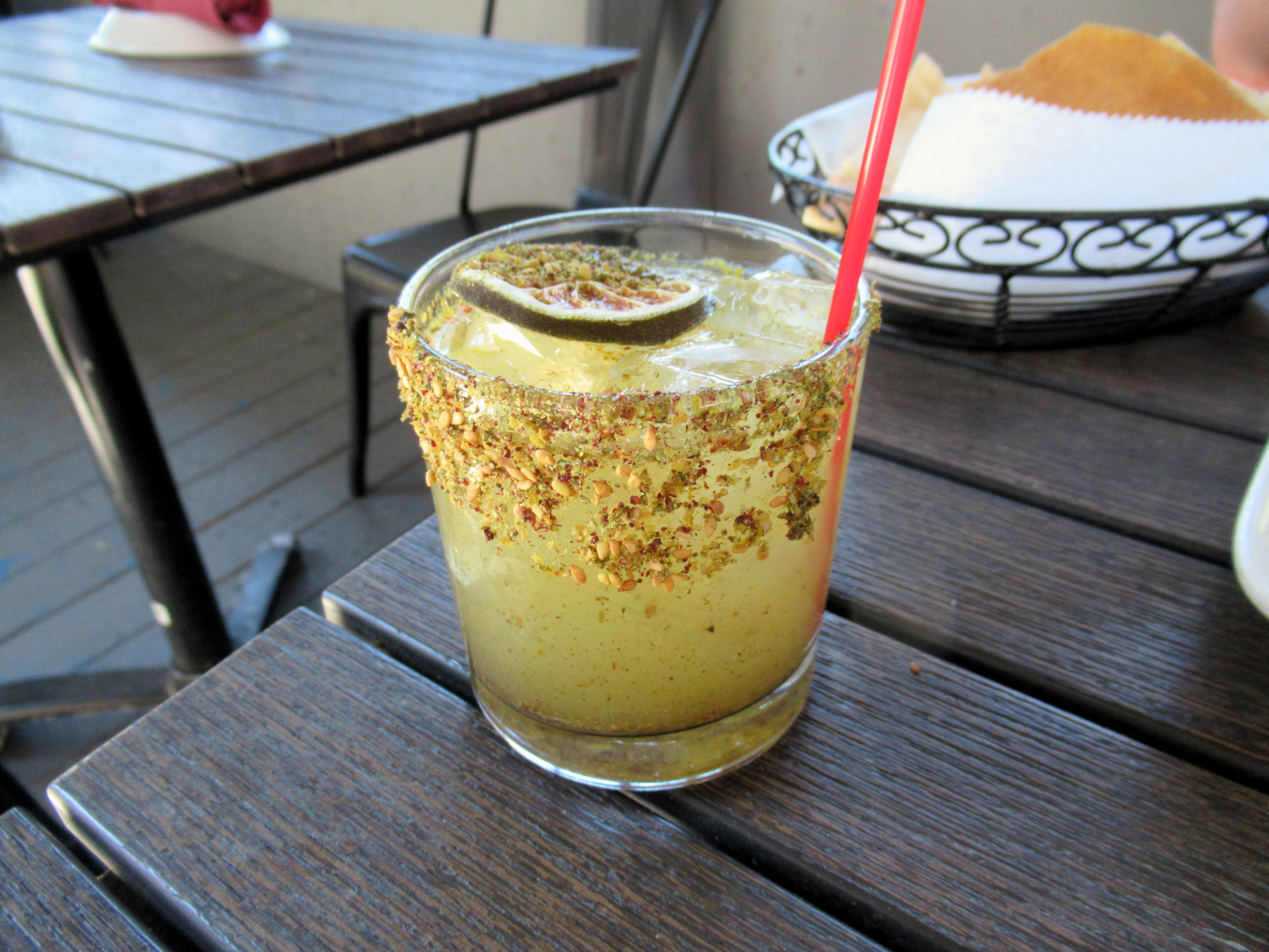 Dinner at Virginia’s. Spicy Marg 2.0 – tequilla, passion fruit, lime, Thai chili oil, and spicy salt.