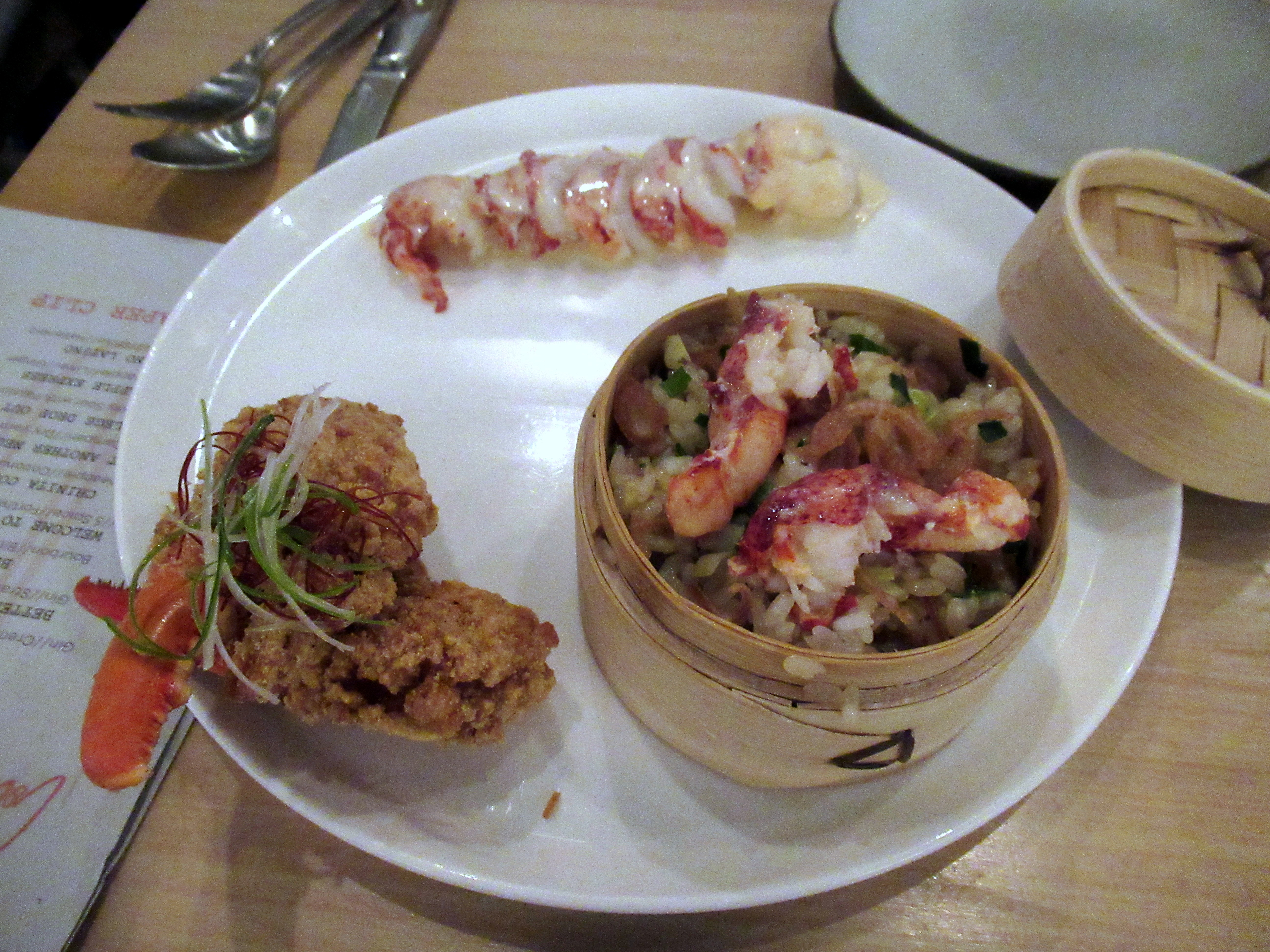 Lobster three ways, fried salt and pepper claws / fried rice / and in a miso beurre blanc.