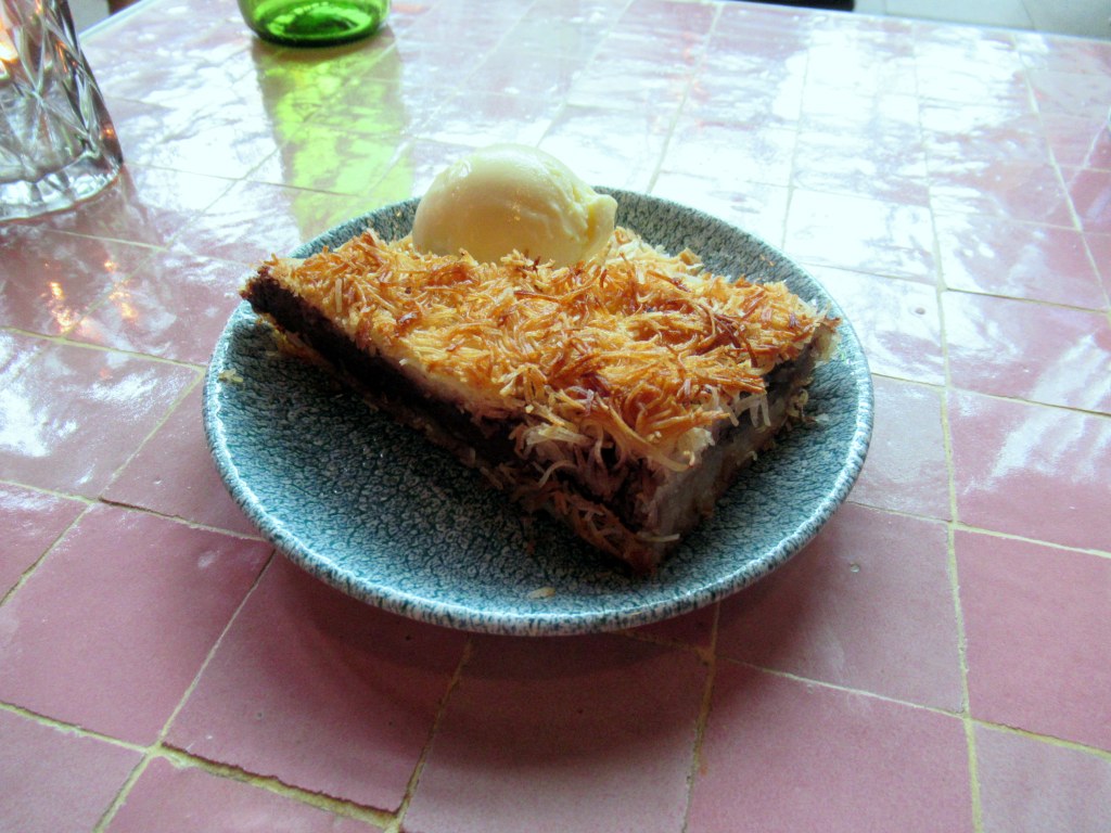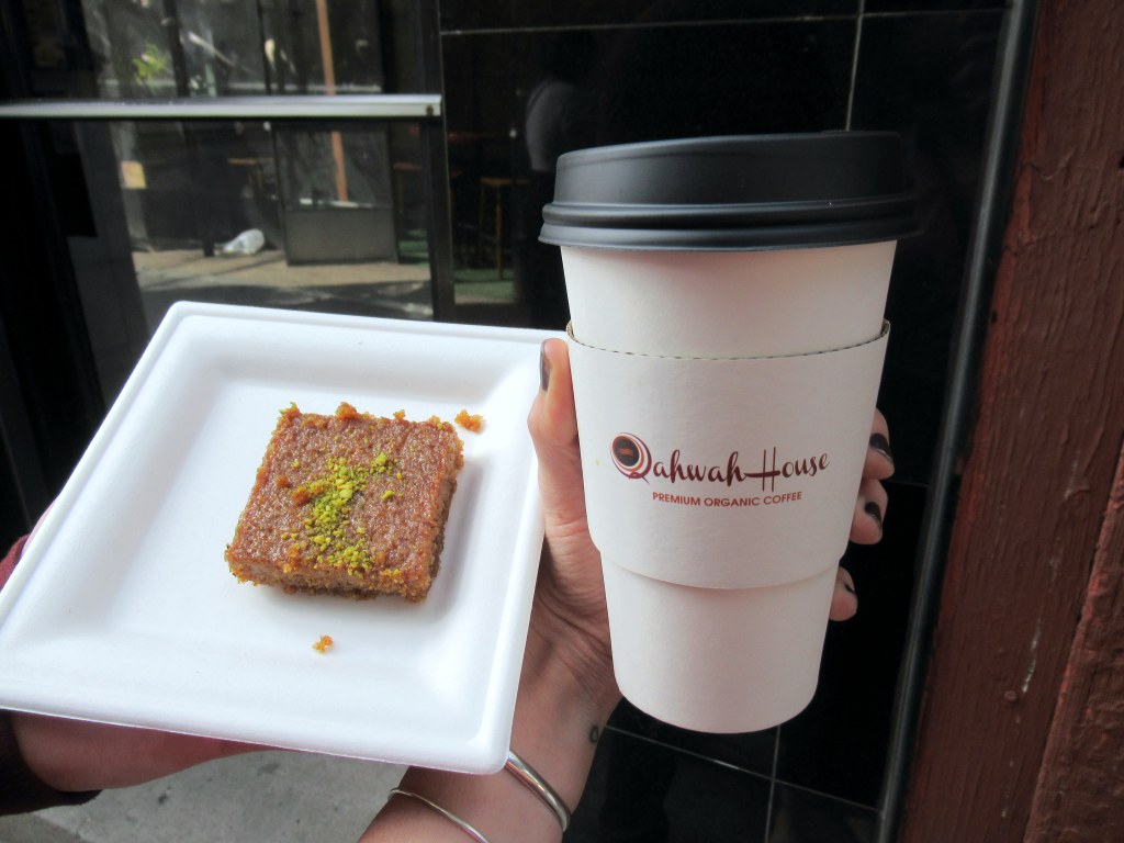 Qahwah House. We got a Mofawar (Yemeni coffee with cinnamon, cardamom, and cream) and a Basboasaa (a semolina cake with pistachios and sweetened condensed milk).