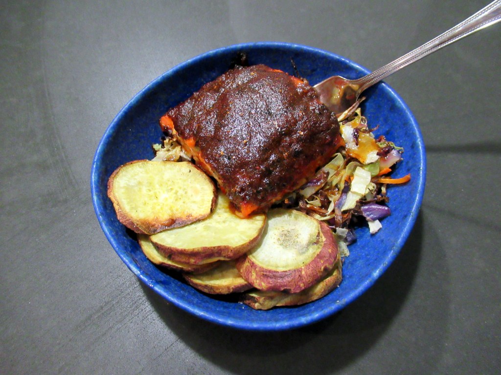 Pinch of Yum‘s bbq salmon plus roasted Japanese sweet potato and roasted cabbage dressed in a mix of honey, rice vinegar, and Caribbean hot pepper sauce.