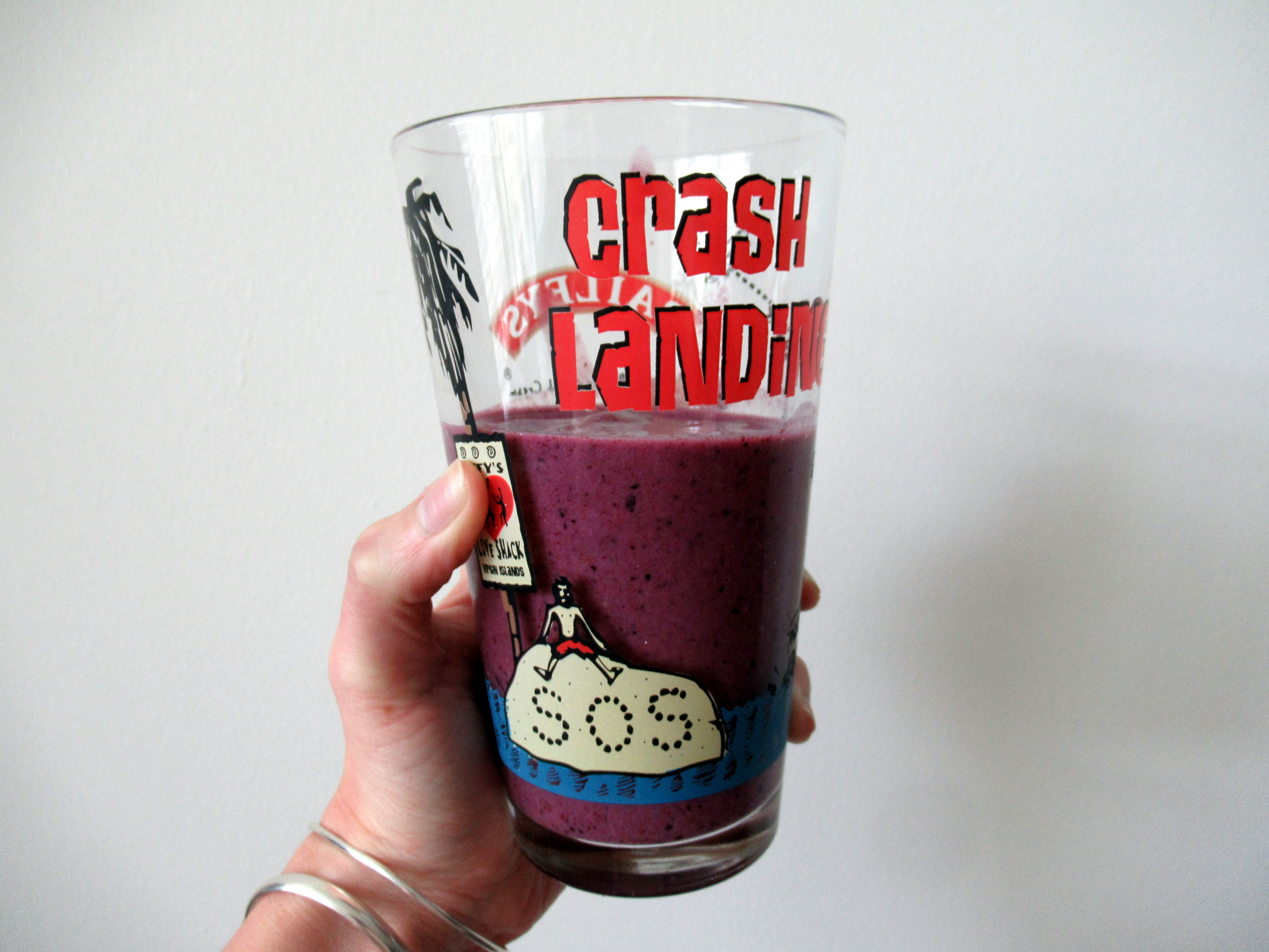 Smoothie success – cottage cheese, frozen banana and cherries, ube extract.