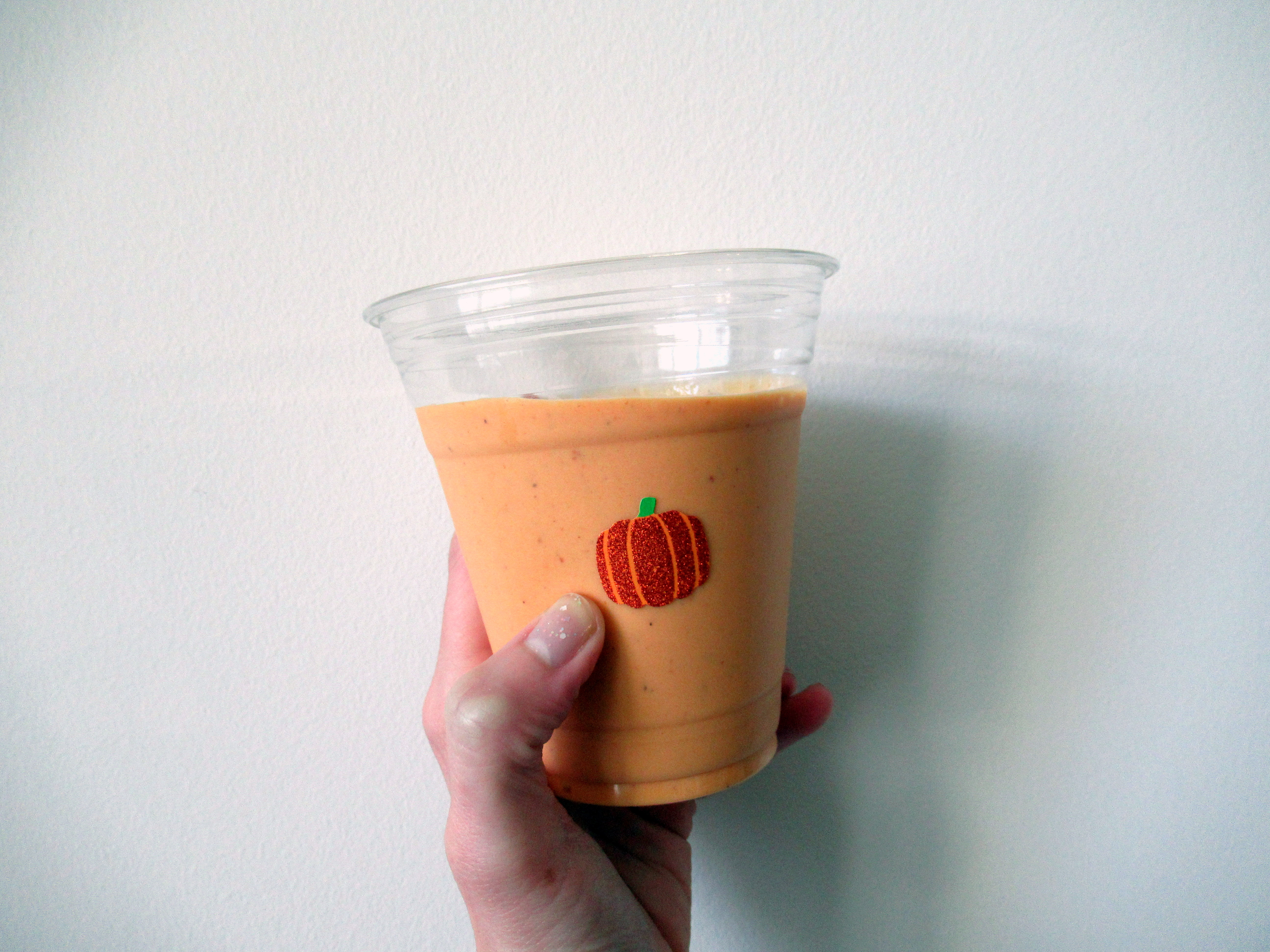 Pumpkin protein smoothie. Pumpkin puree, cottage cheese, vanilla protein powder, maple, cinnamon, and nutmeg.