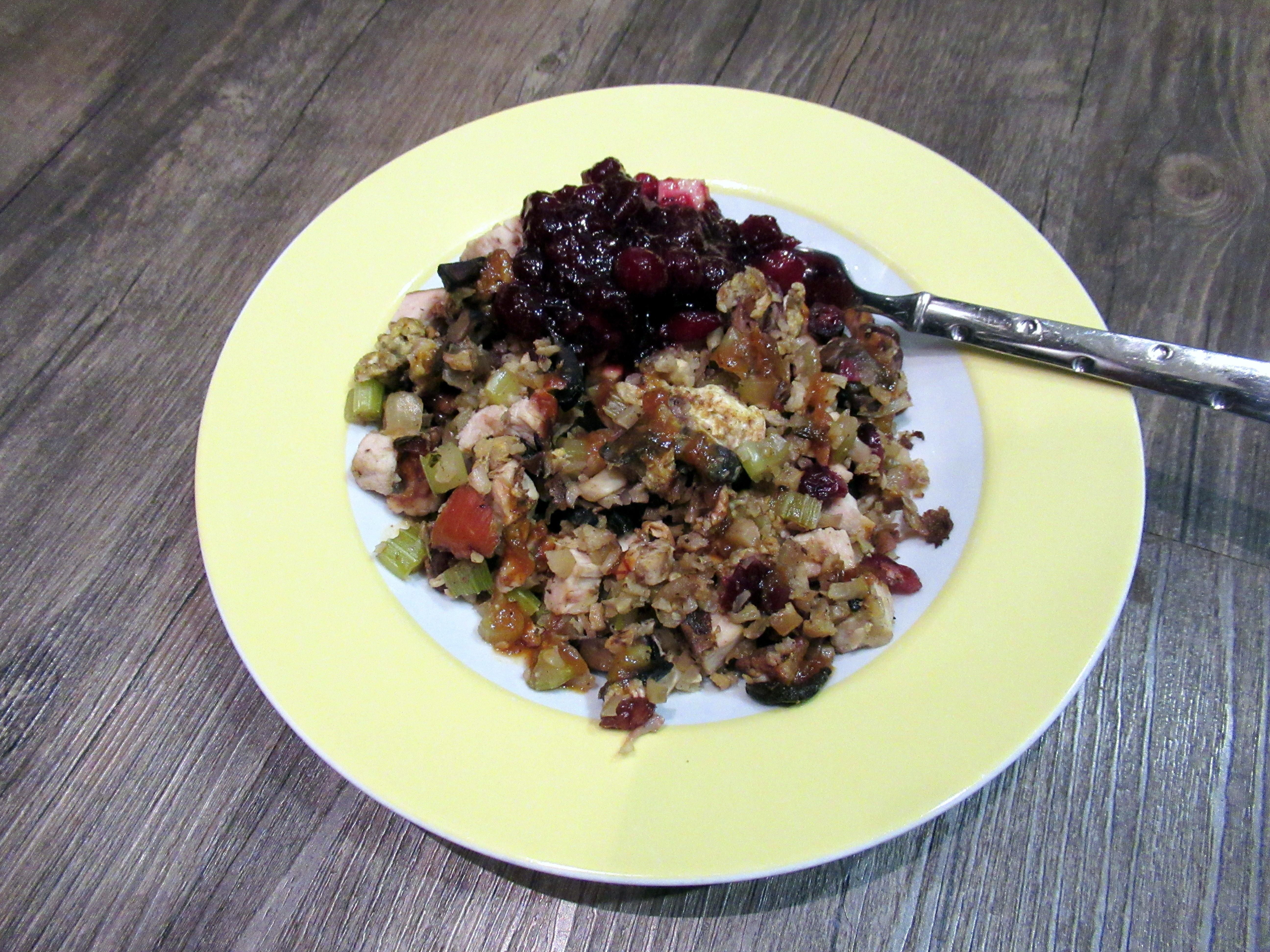 The last of the stuffing-inspired fried cauliflower-rice. Topped with the last of the cranberry sauce and pineapple hot sauce. I am definitely making this dish again next November!