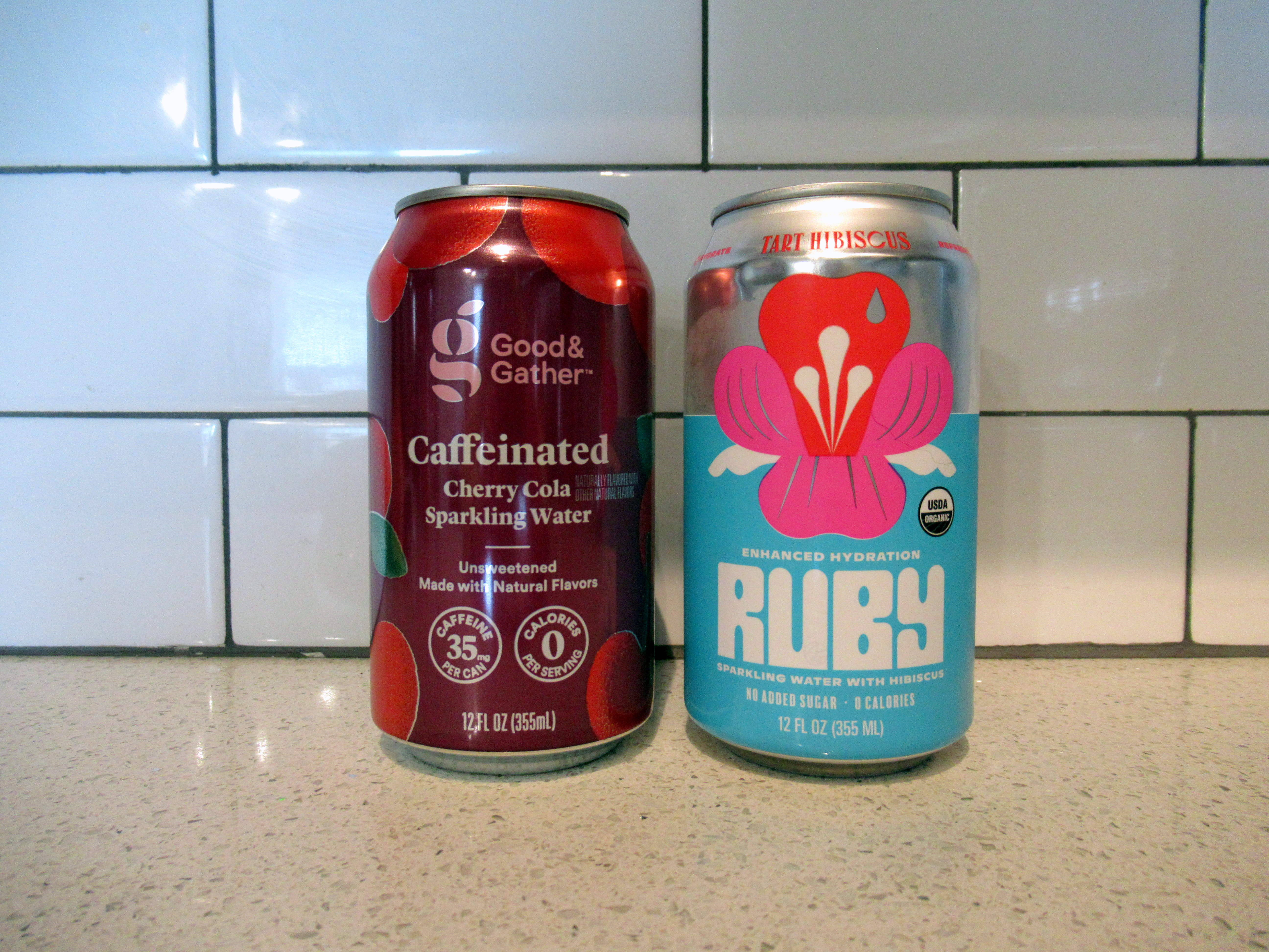 Fun in sparkling waters – Target caffeinated cherry cola and Ruby tart hibiscus. Both were an 8/10.