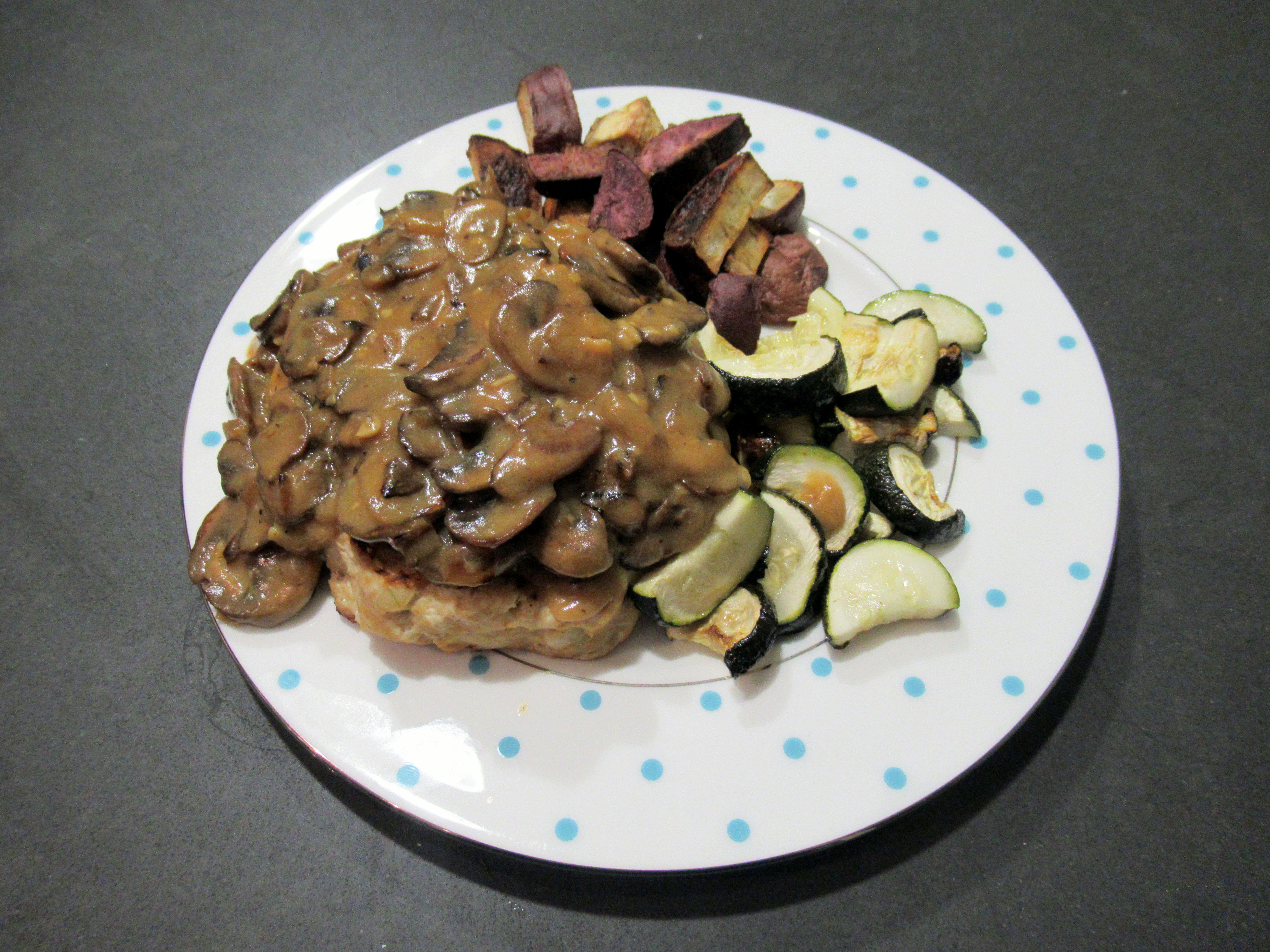 I had never actually tried Salisbury steak before but I loved it. We loosely followed this recipe but I used ground turkey and way more mushrooms. Plus roasted purple and Japanese sweet potato and zucchini.