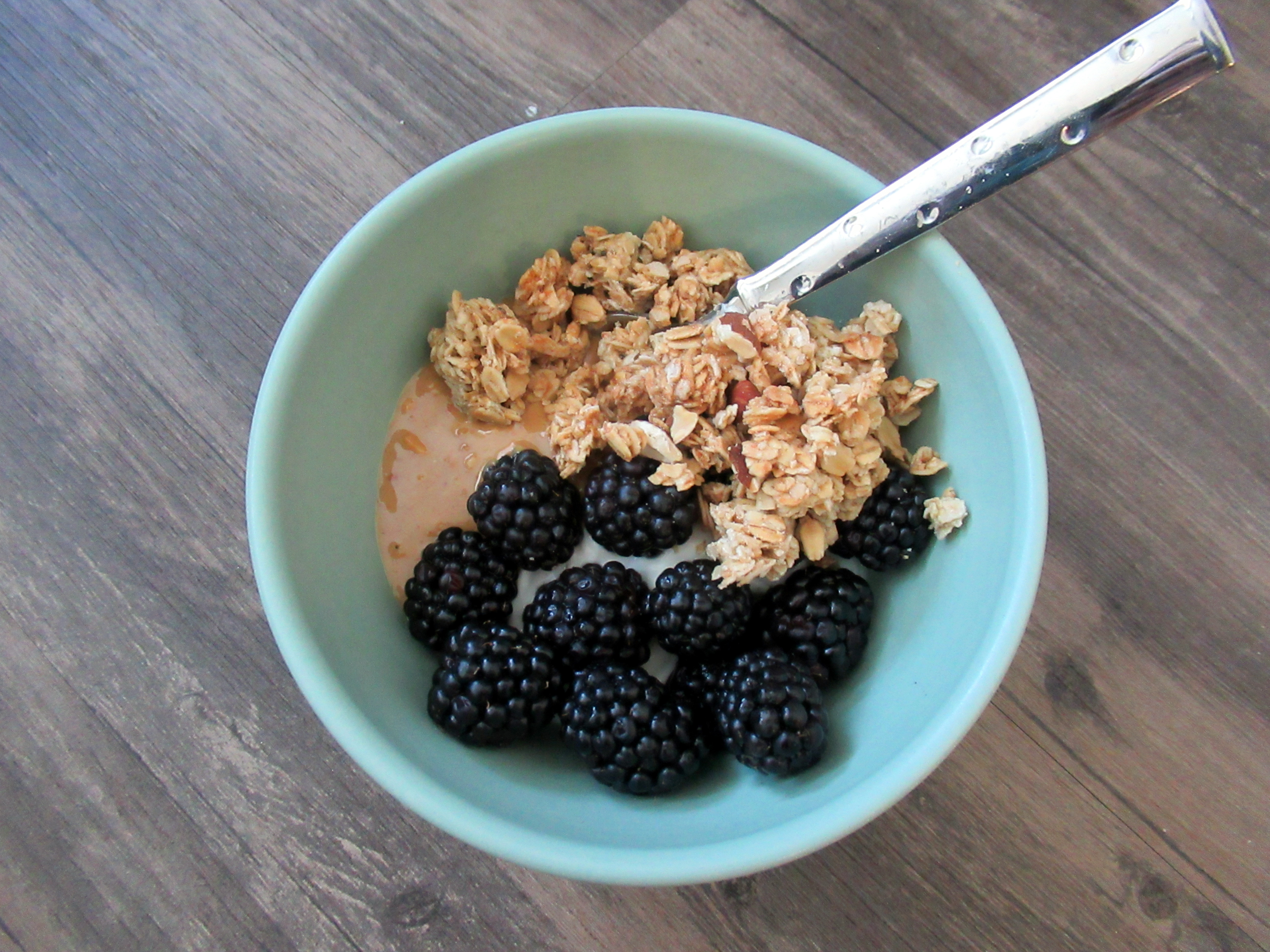 This week’s yogurt bowl combo was plain skry, blackberries, peanut butter, and Nature’s Path honey almond granola.
