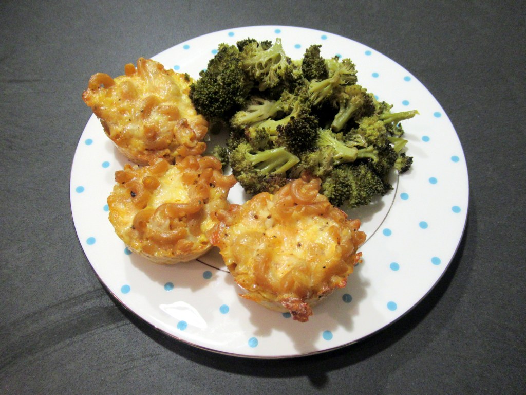 Macaroni and cheese muffins. I used extra-sharp cheddar instead of parmesan and added mustard powder. Plus roasted broccoli.