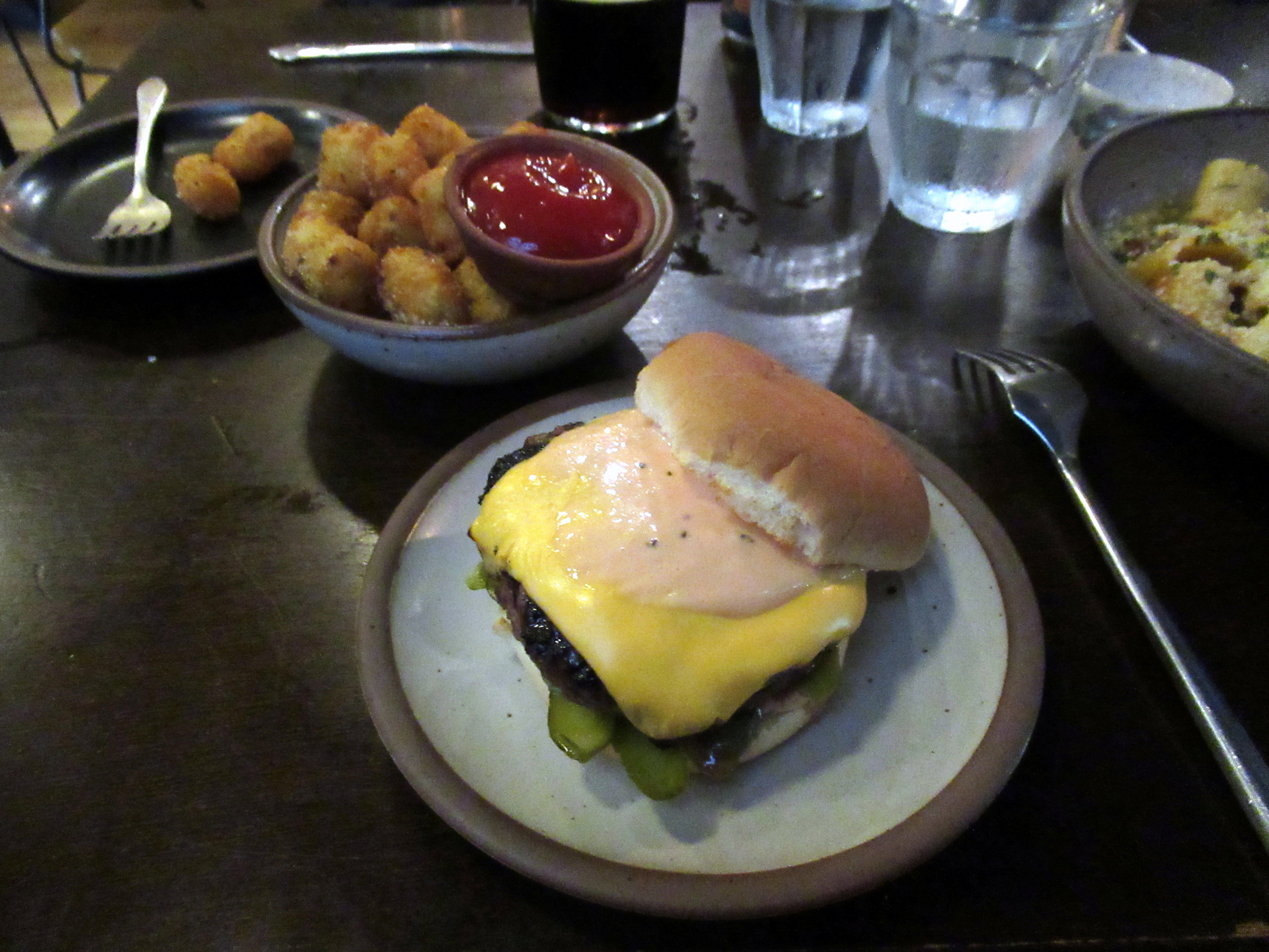 The burger with pickles, American, and special sauce. Plus the crispiest tater tots.