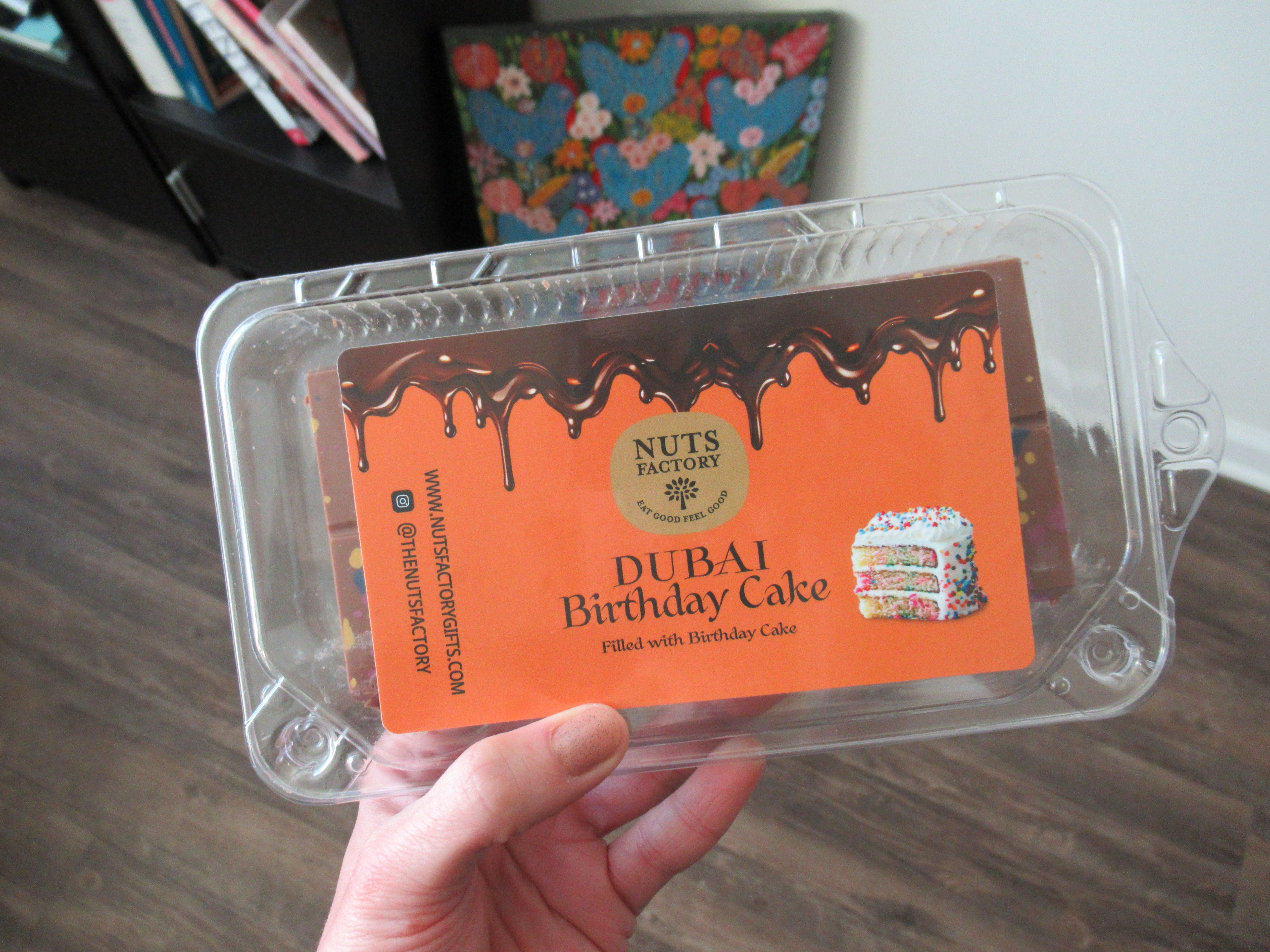 The Nuts Factory birthday cake bar was good but not what I was expecting (some sort of cake butter); it was literally a slice of cake enrobed in chocolate.