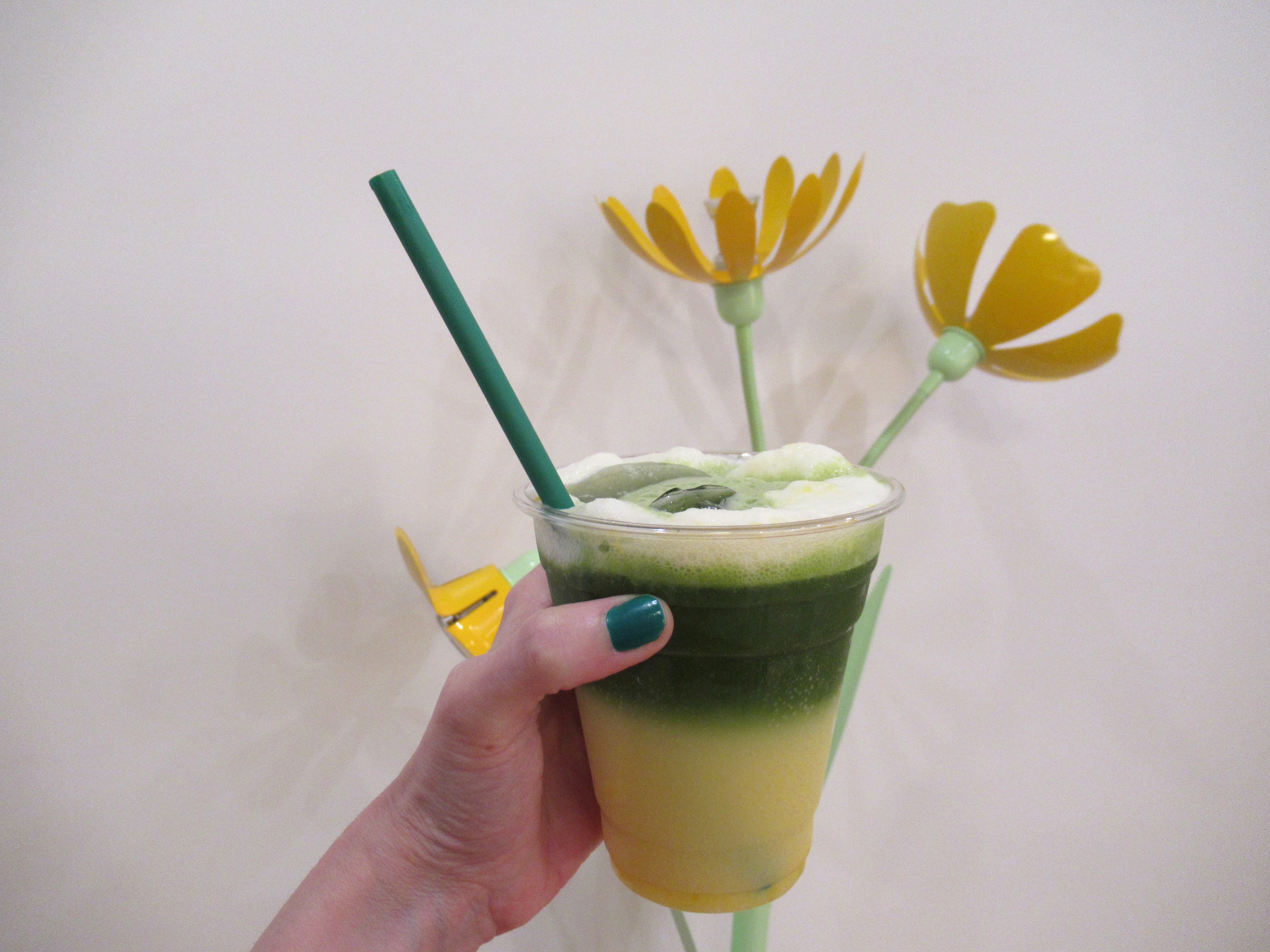 Homemade matcha lemonade. Iced matcha in ginger yuzu seltzer with some homemade Meyer lemon curd.
